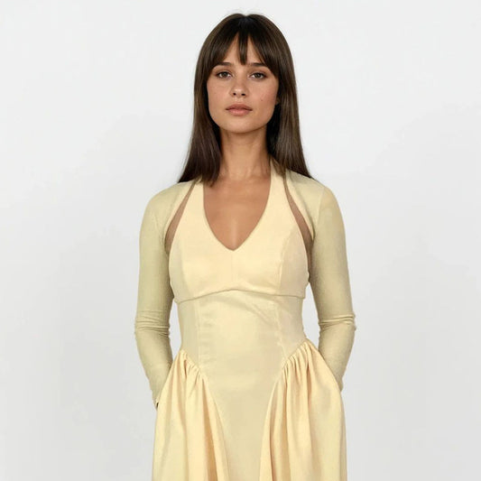 Hillary Halter Sleeveless Midi Dress with Bust Pads