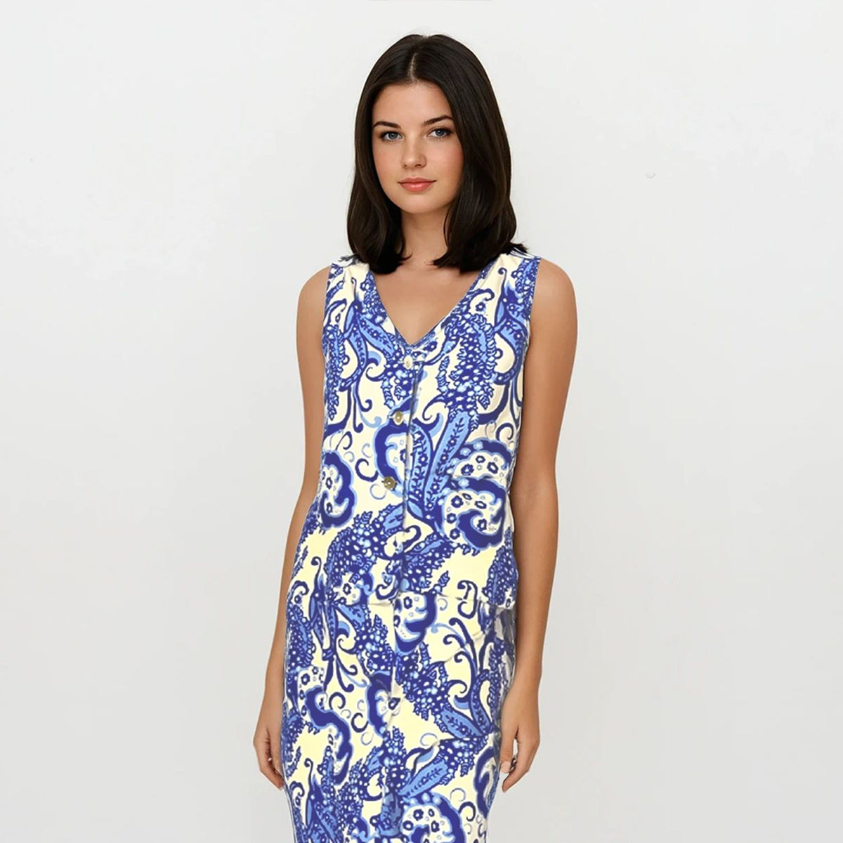 This vest and pants set, crafted from printed linen fabric, offers a classic style that's both versatile and stylish. Perfect for mix-and-match outfits and layering, it combines comfort with a timeless aesthetic, making it a must-have for creating effortless, chic looks.