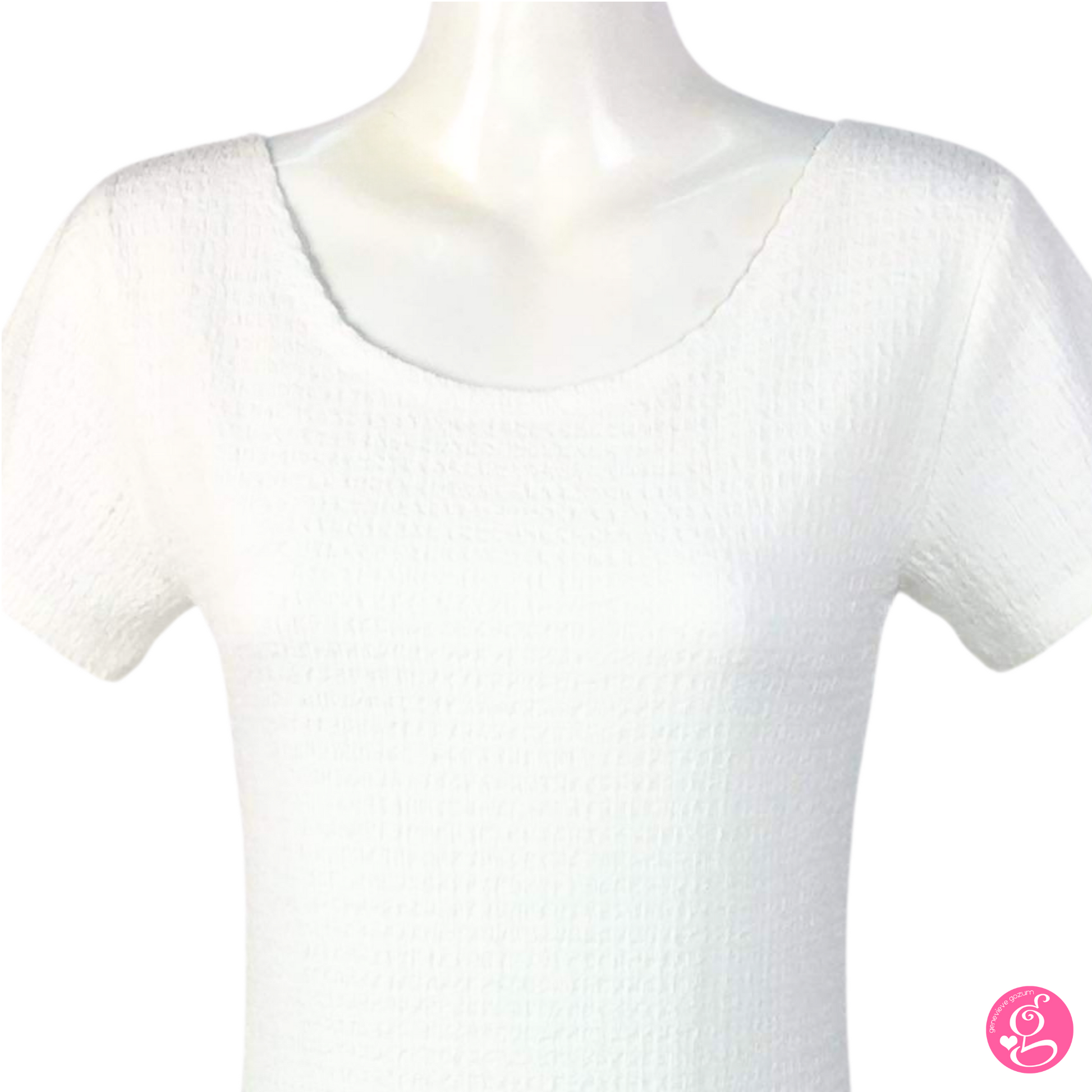 Introducing our slim fitting knitted dress with scoop neck & short sleeves.