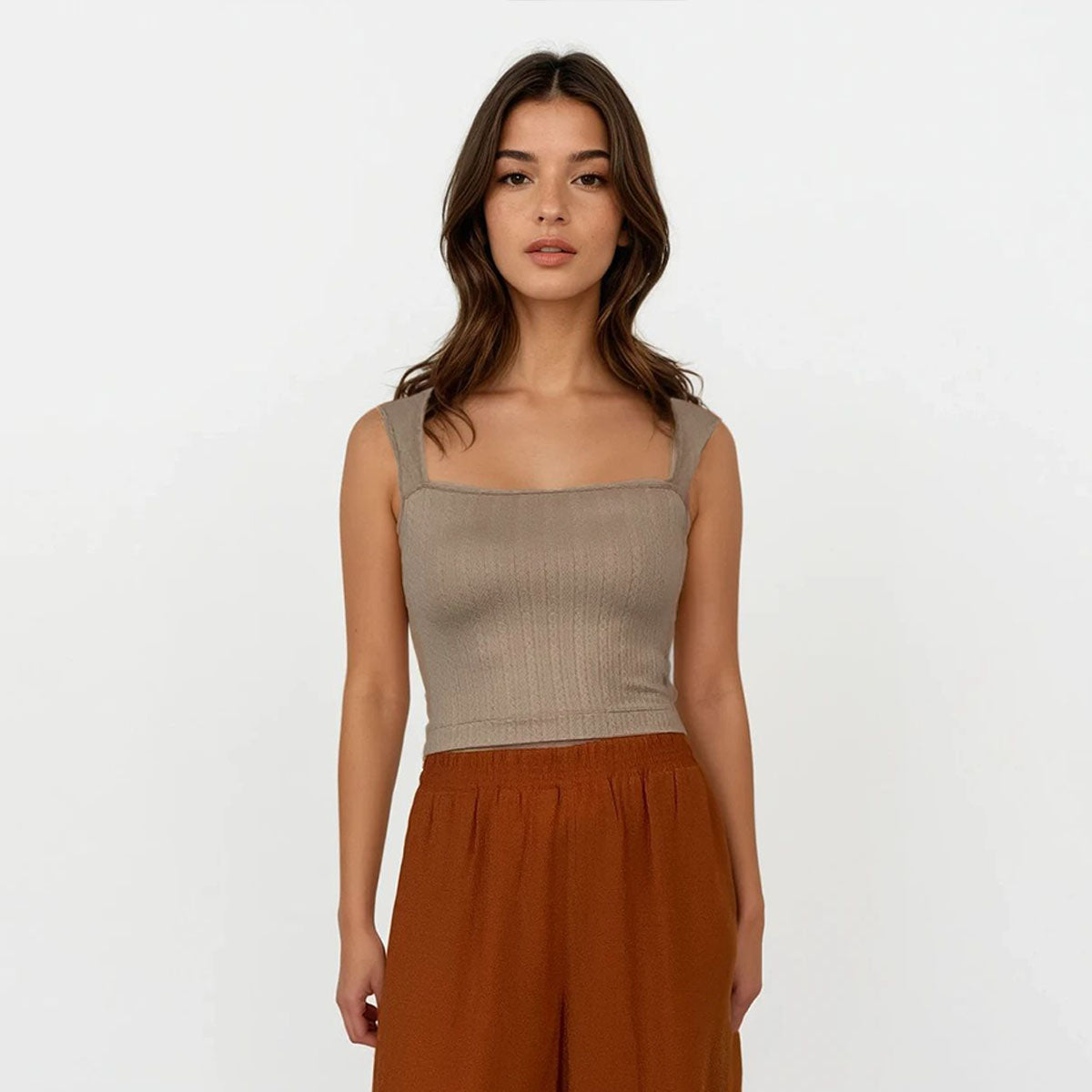The Alliyah Illusion Shrug Top Blouse combines classic style with a playful twist. Its peek-a-boo back detail adds a flirty surprise, while the stretchy cable knit fabric ensures comfort and texture. Featuring a square neckline and sleeveless cut, this blouse is a versatile piece that effortlessly balances timeless elegance with fun flair.