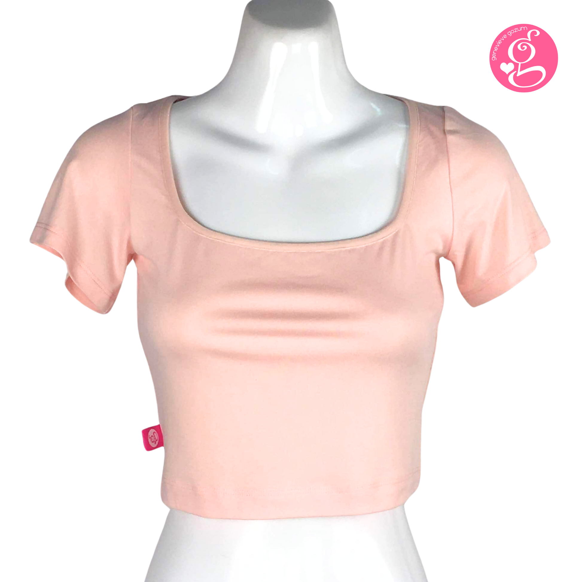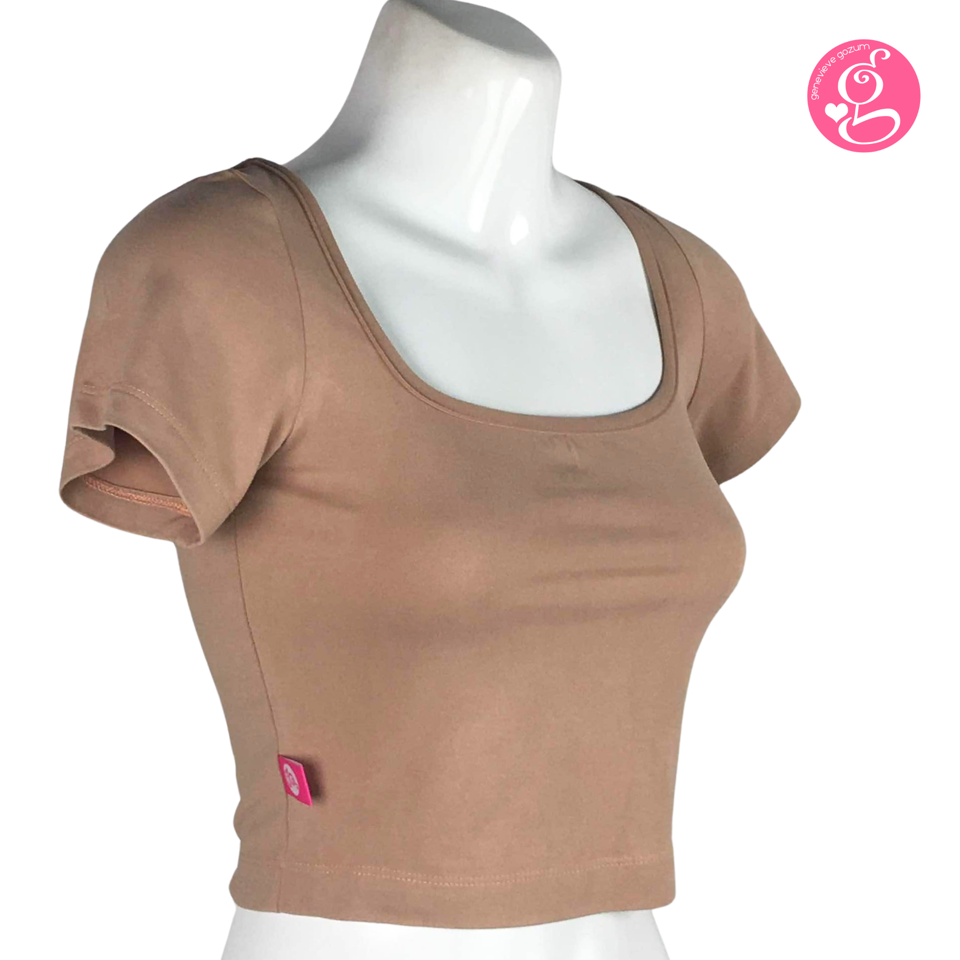 Upgrade your wardrobe with the fitted crop top from Genevieve Gozum, a must-have basic that combines style and comfort. Featuring short sleeves and a deep square neckline, this top is designed to flatter your figure while offering a chic, minimalist look. Made from soft and comfortable cotton spandex, it provides a perfect fit that feels as good as it looks.