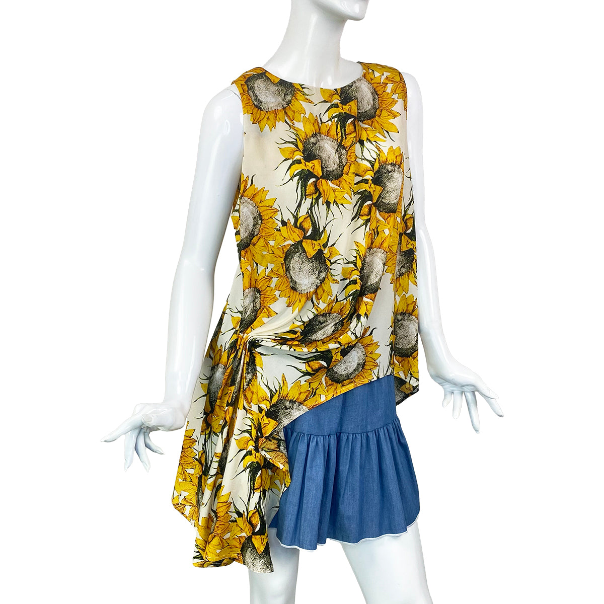 Sunflower Print Asymmetrical Drape Blouse – Flattering Fit, Unbeatable Style