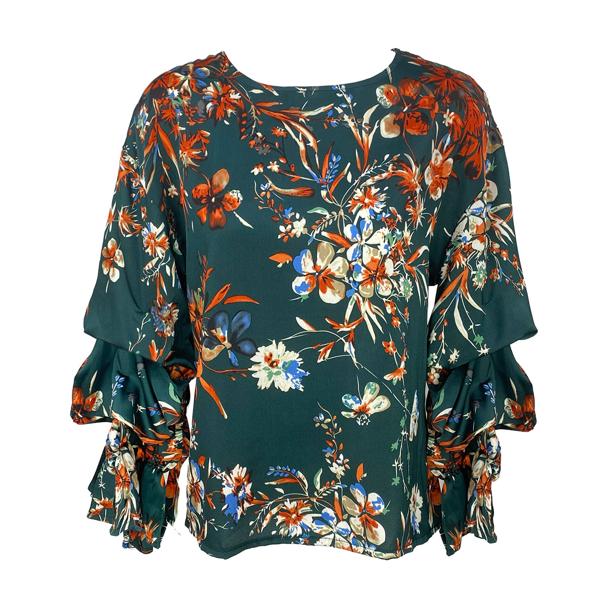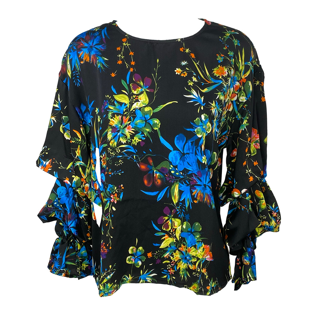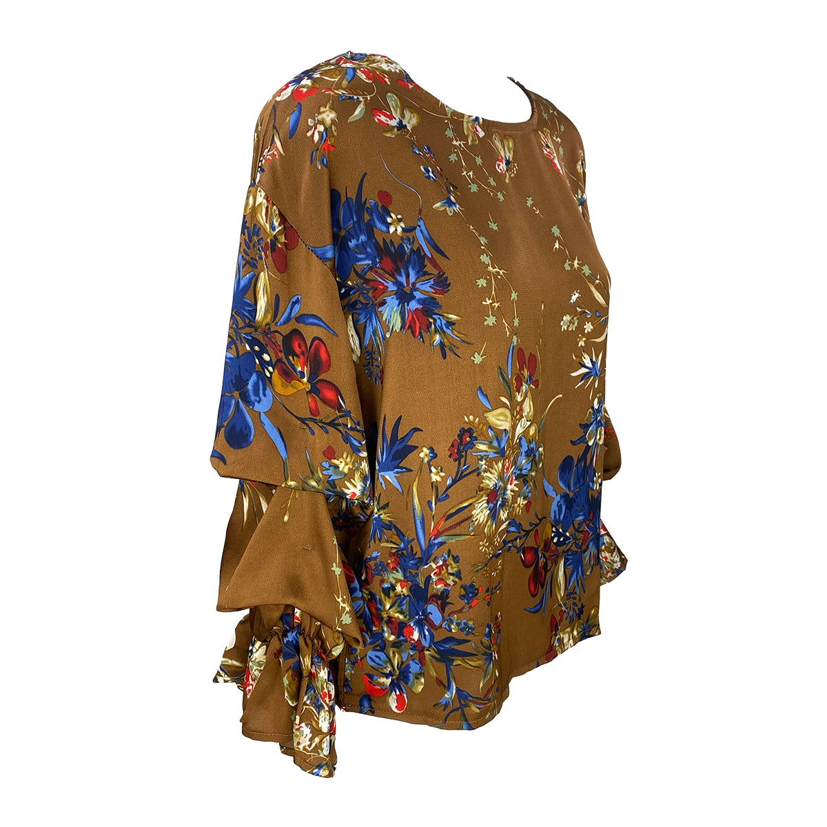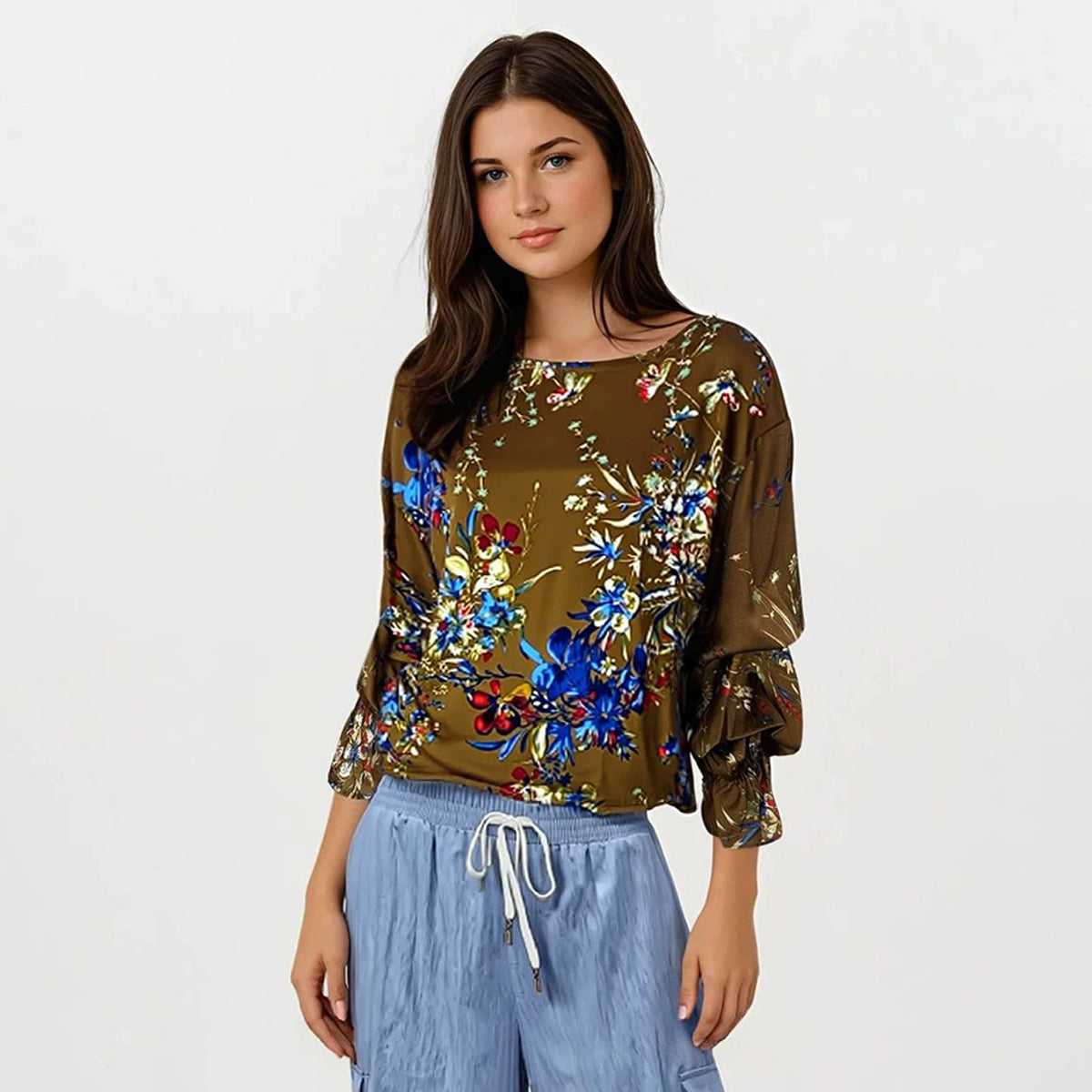 The Ashley Pleated Sleeves Blouse features a classic design enhanced by delicately pleated sleeves, exuding a timeless romantic charm. Crafted from smooth floral satin fabric, it offers a luxurious feel and elegant drape. Designed in a generous size, this blouse ensures comfort without compromising style, making it a refined choice for sophisticated wardrobes.