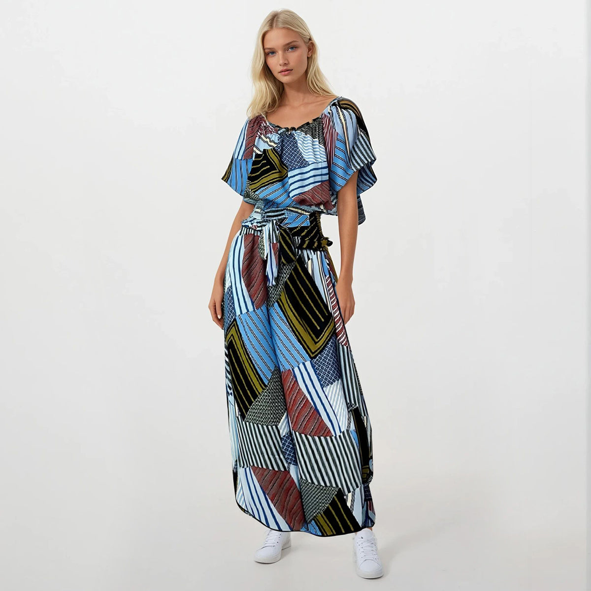 Butterfly Jumpsuit Off Shoulder Patchwork Print