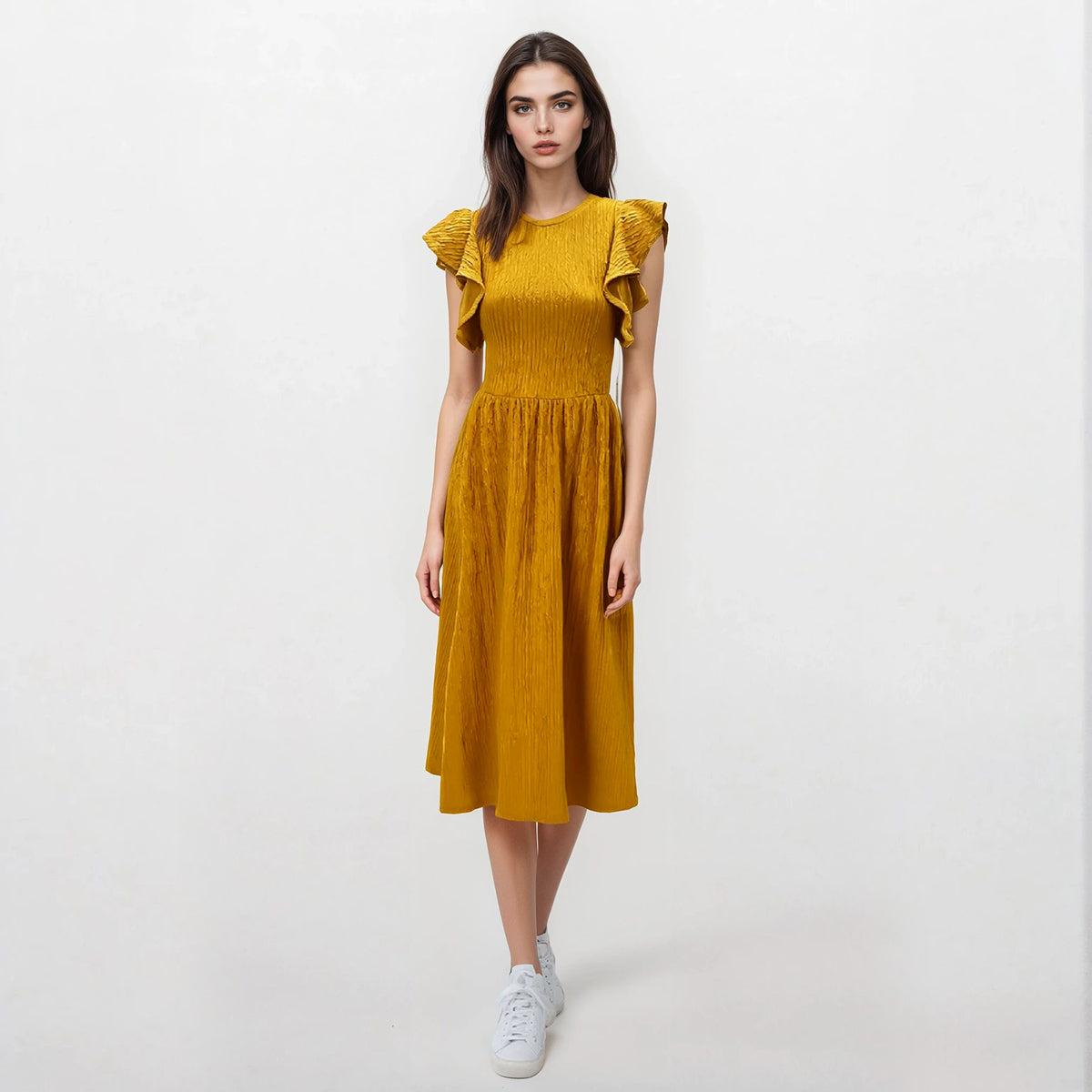 Experience effortless style with the Butterfly Ruffle Dress, crafted from our luxurious rib fabric that stretches for comfort and durability. This dress is perfect for busy days—wash and wear without the hassle of ironing. Its elegant butterfly sleeves add a graceful touch, and it pairs beautifully with your Filipiniana cardigan for a versatile, polished look. Embrace convenience and charm in one stunning piece.