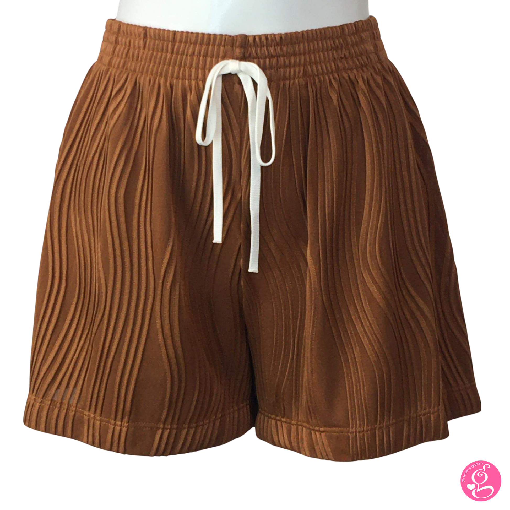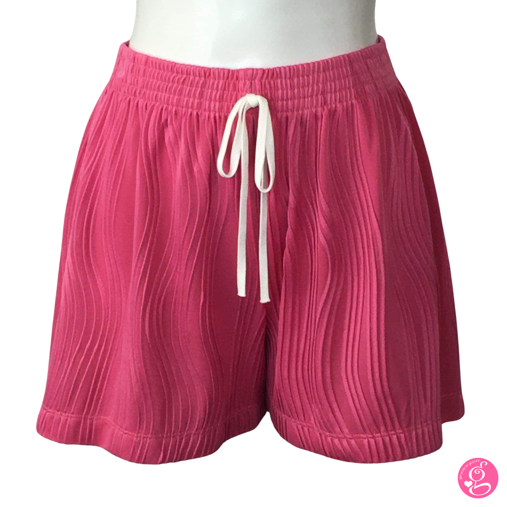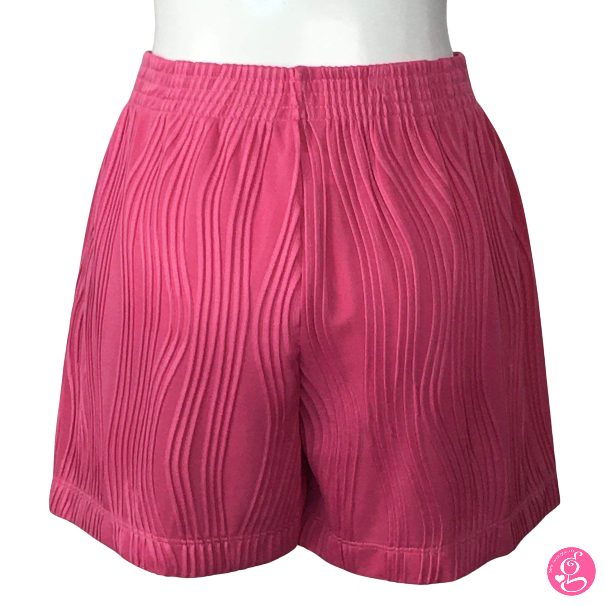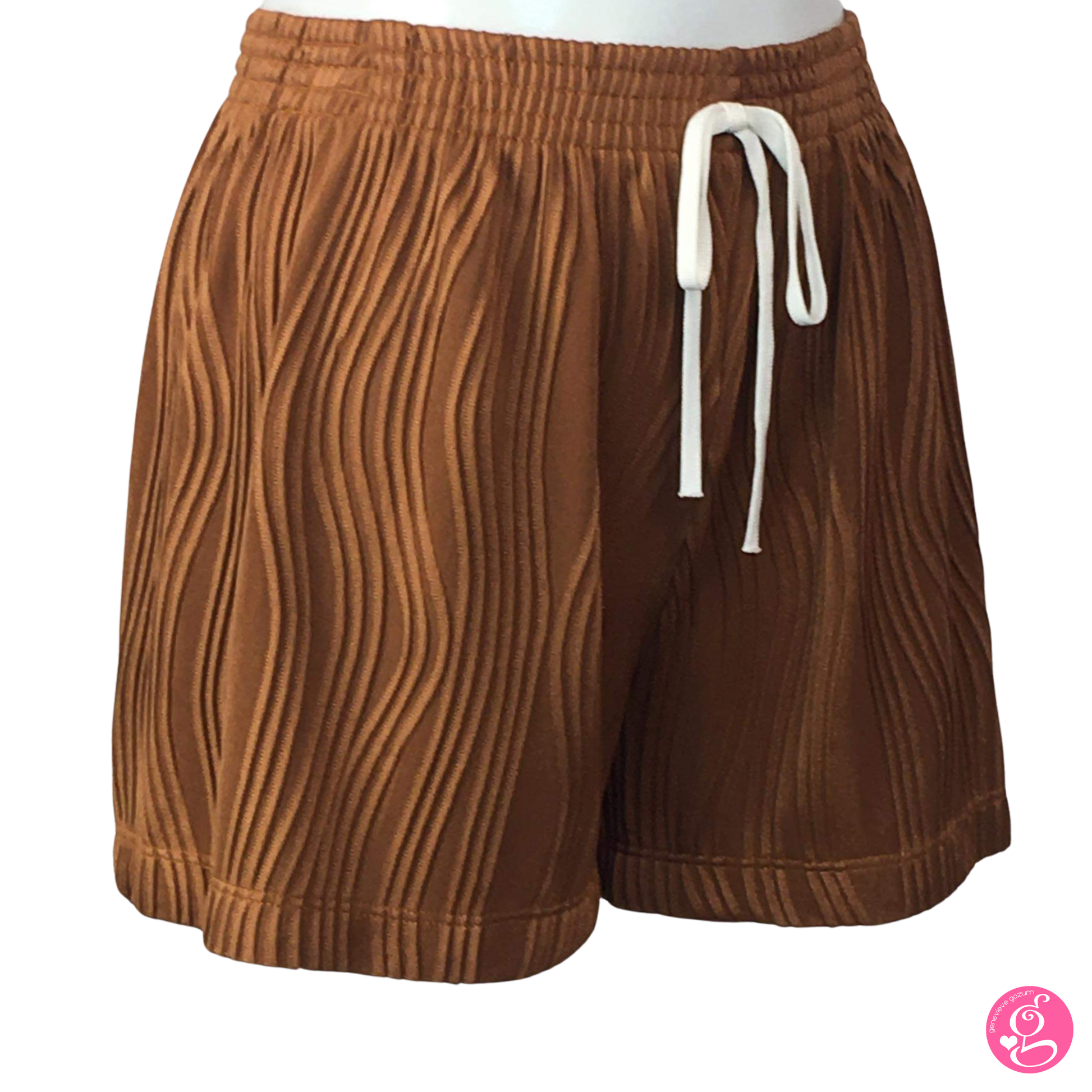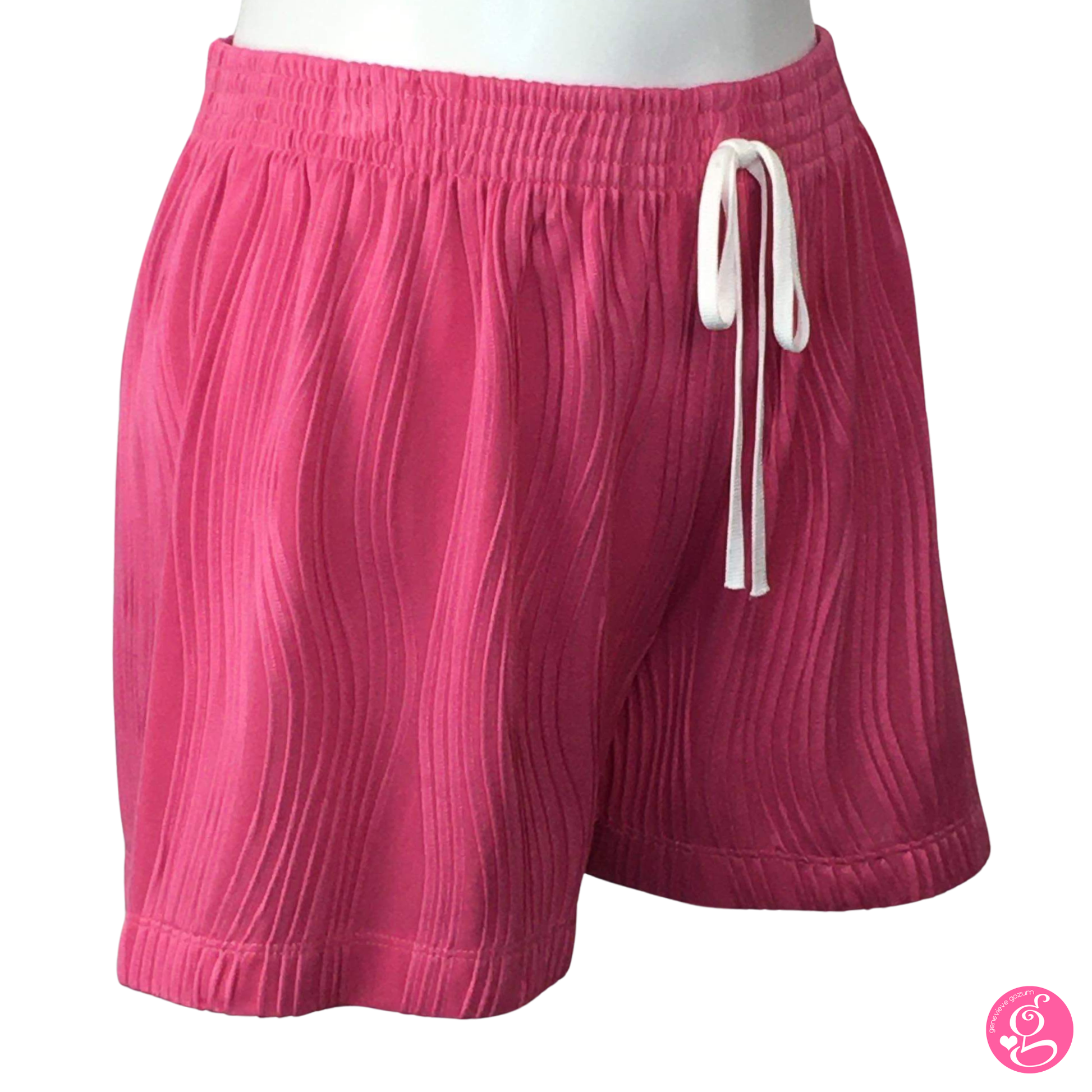 This easy cartoon wave shorts features a textured fabric with 3-D effect waves. It's lined with slip shorts for additional modesty