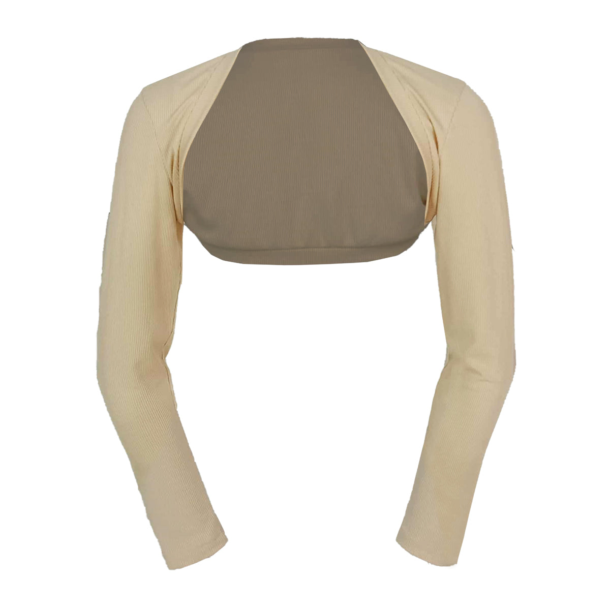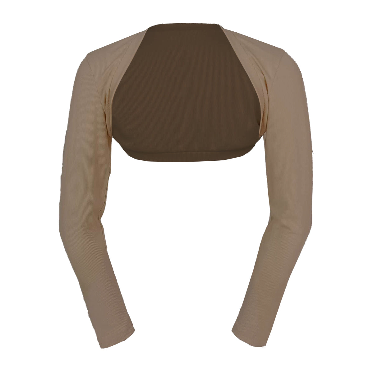 A versatile layering essential, this classic shrug combines functionality with timeless style. Crafted from stretchable fabric, it provides comfortable arm coverage while allowing your outfit's design to remain the focal point. Perfect for transitional weather, casual outings, or elevated evening looks, this piece adapts seamlessly to any occasion. The flexible material ensures a flattering fit that moves with you, making it an indispensable addition to any wardrobe.