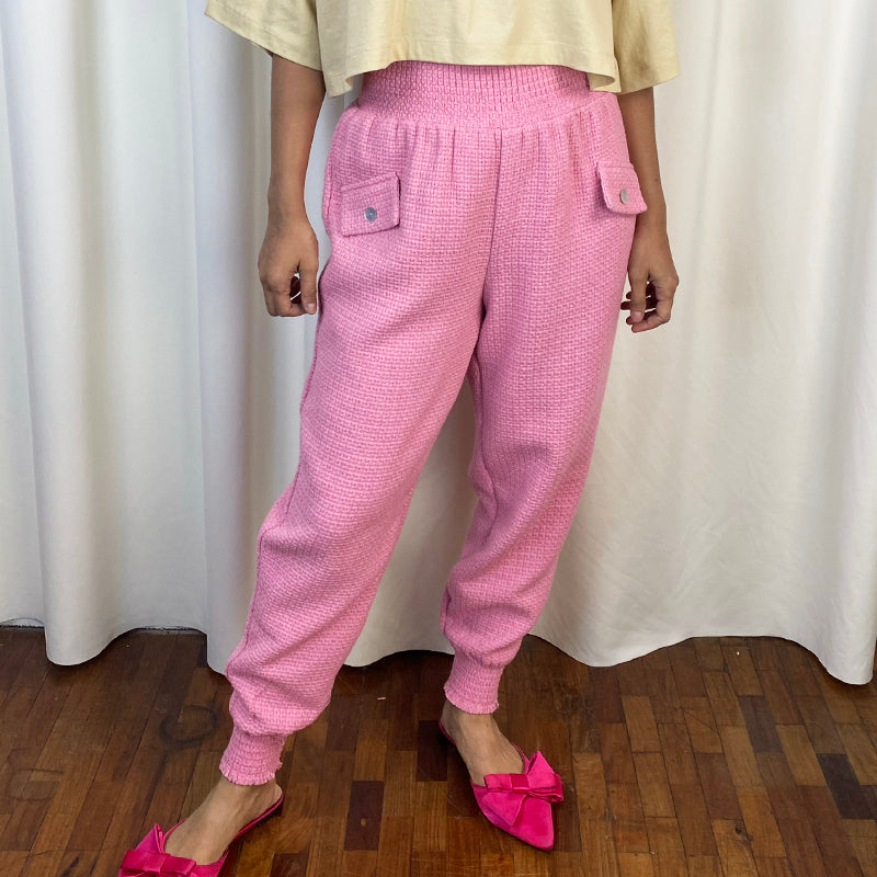 Our Tweed Jogger Pants are as stylish as they are comfortable. They are designed to flatter a range of body types, from medium to XL sizes. The elastic waistband allows for easy pairing with a variety of tops and shoes.