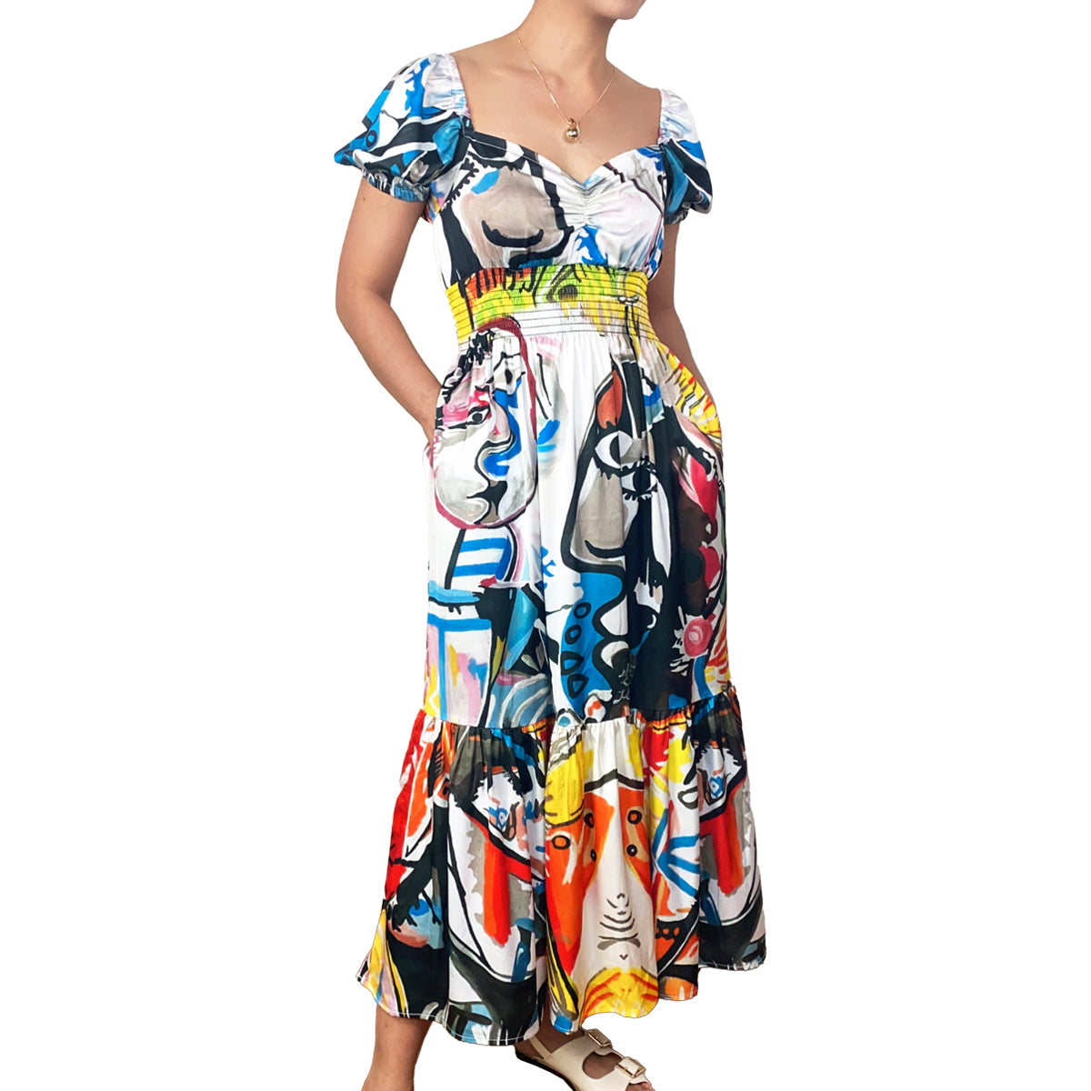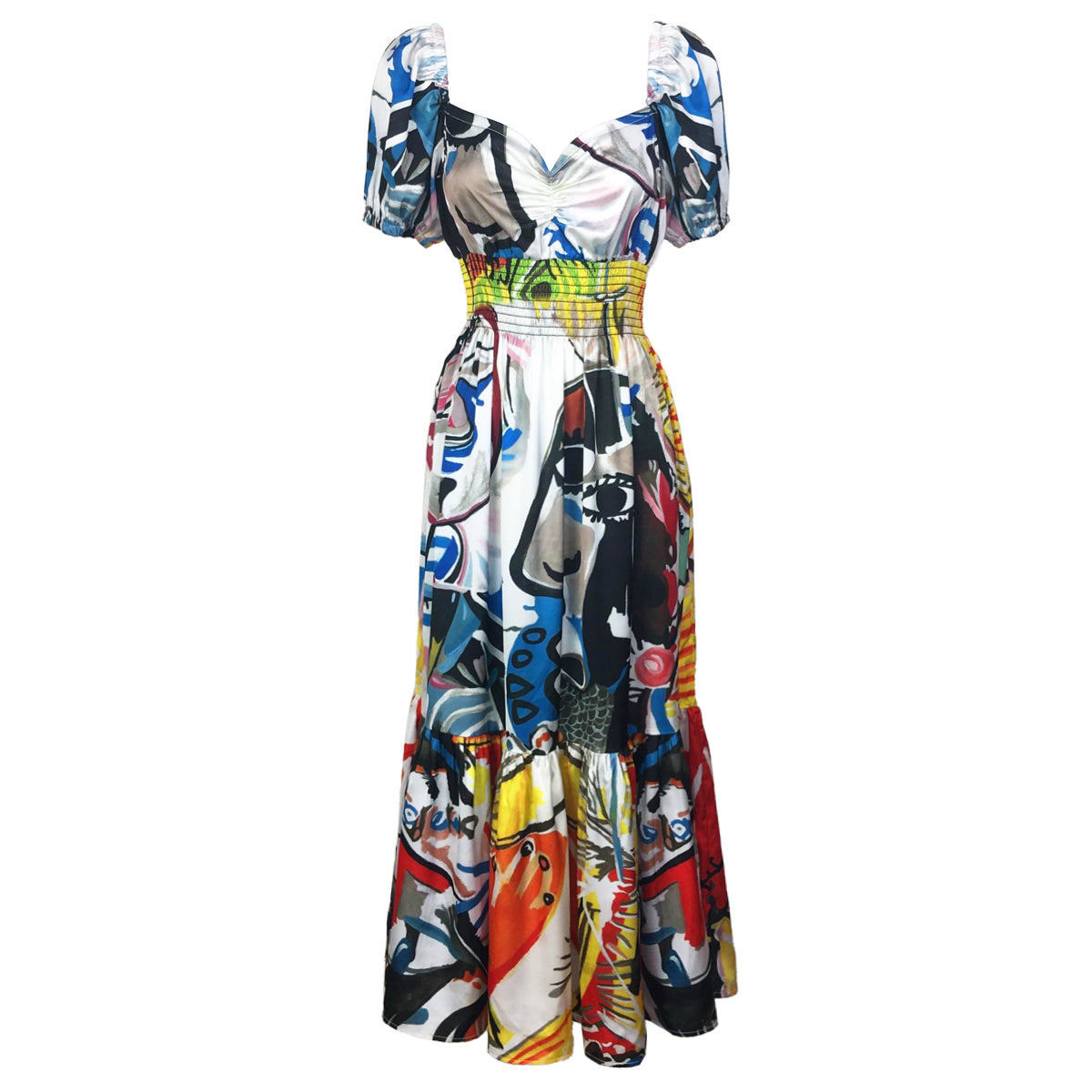 Silky Crepe Picasso Sweetheart Maxi Dress
