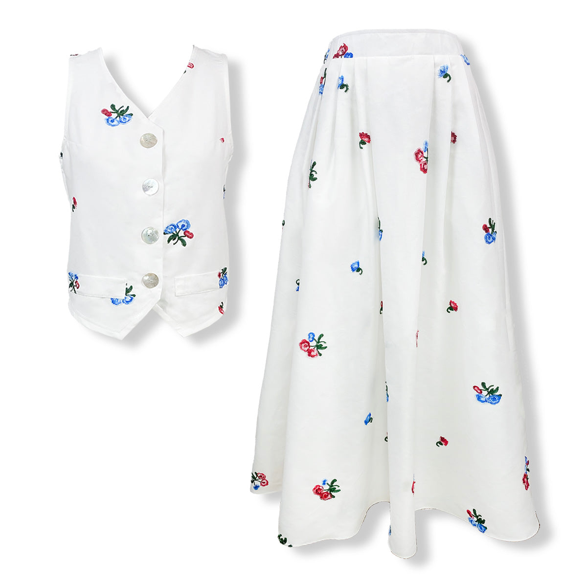Cotton Embroidery Vest and Maxi Skirt