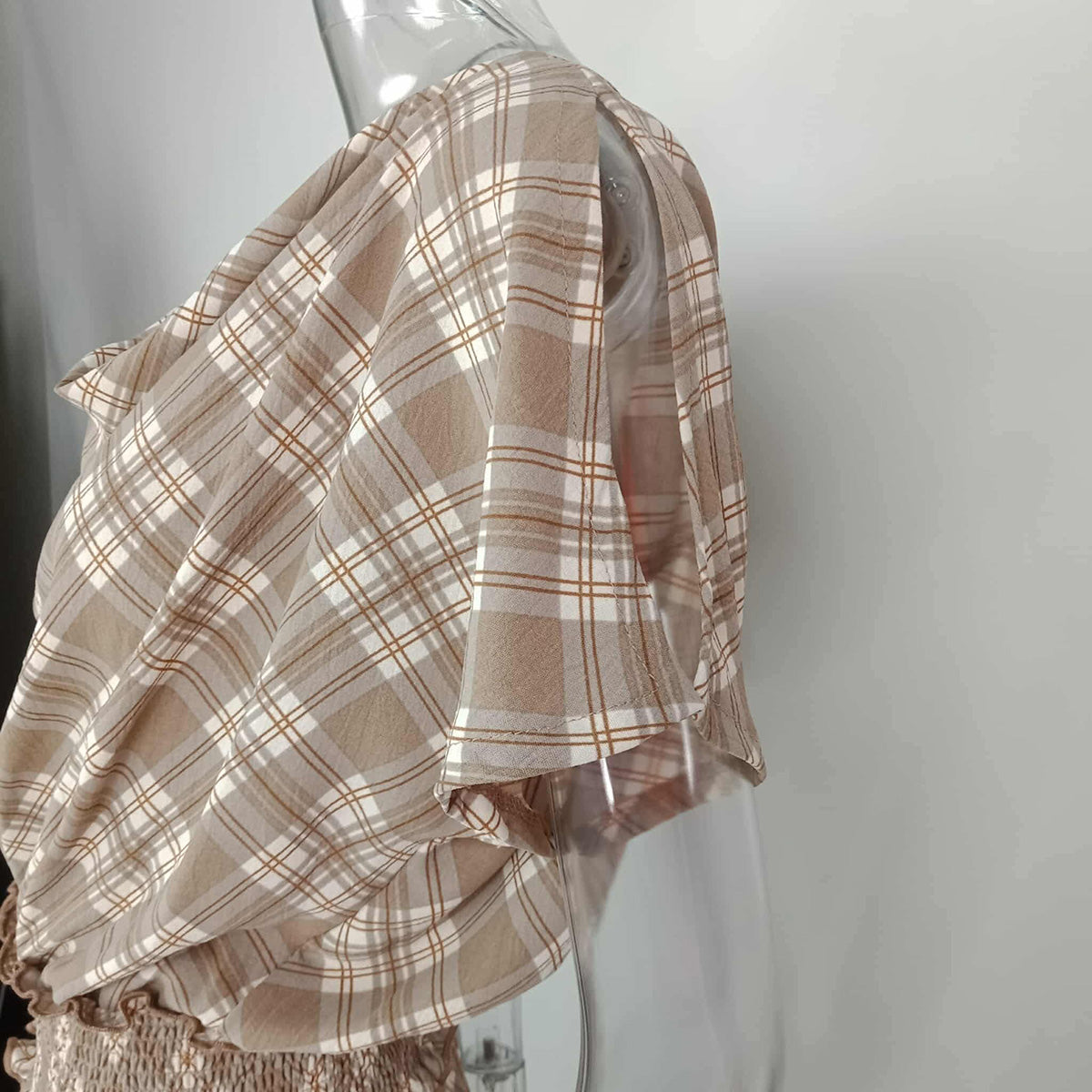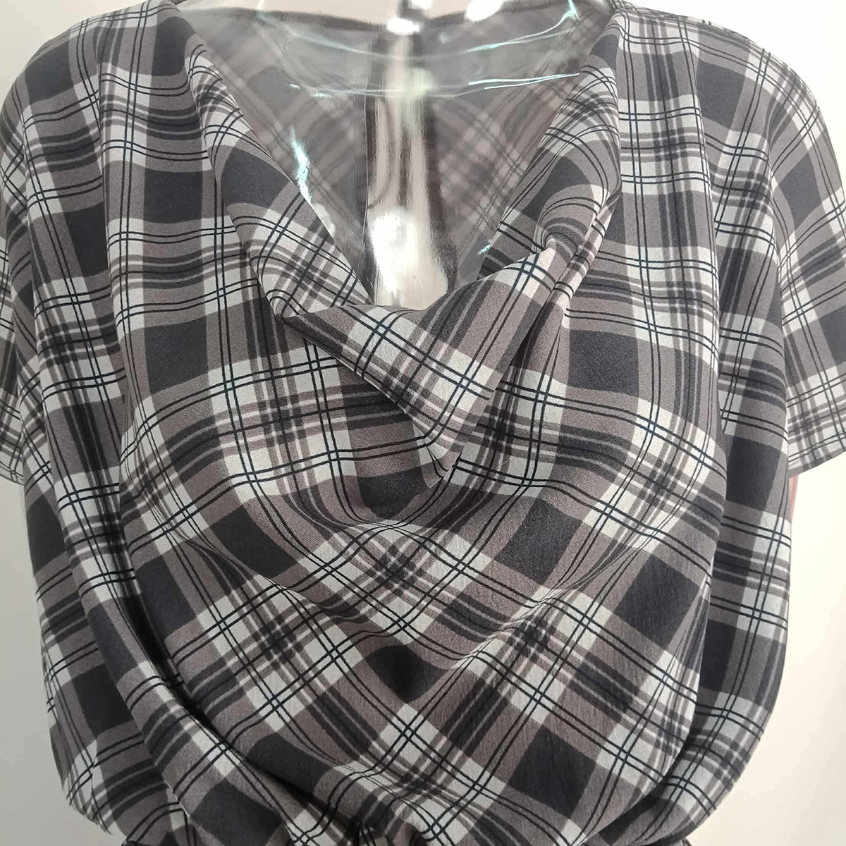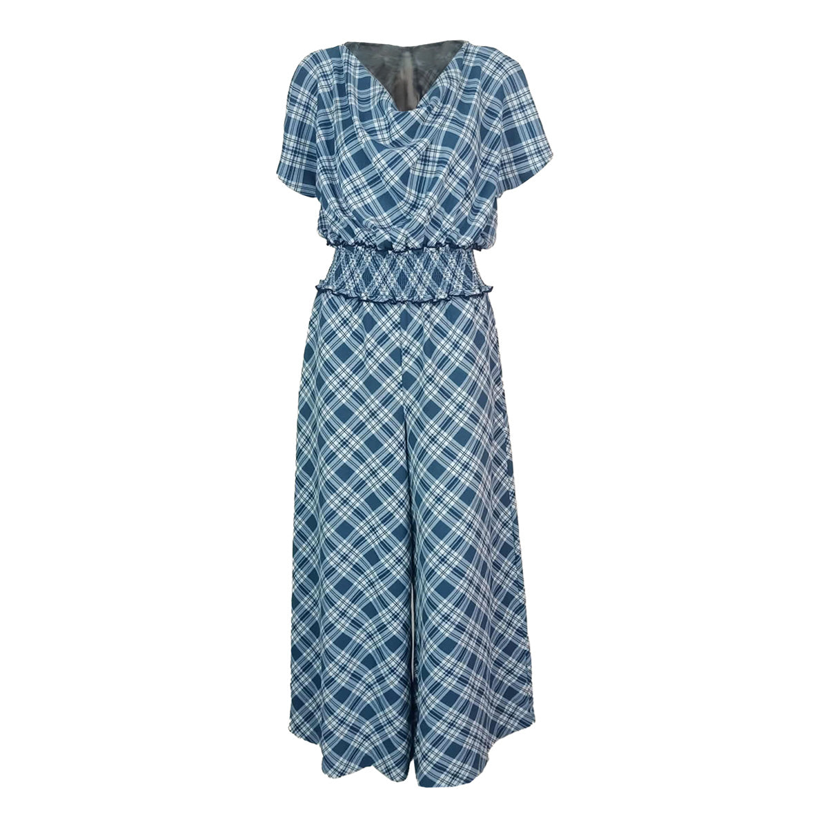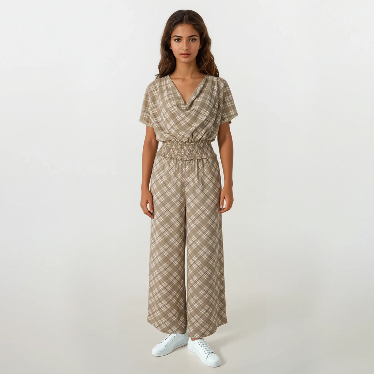 Elevate your wardrobe with this cowl neck jumpsuit featuring extended sleeves with elegant slits and a smocked waist for a tailored fit. Crafted from flowy linen crepe in a timeless plaid pattern, it combines comfort with sophistication. The classic wide-leg pants add effortless movement and a contemporary silhouette, making this piece a versatile statement for any occasion.
