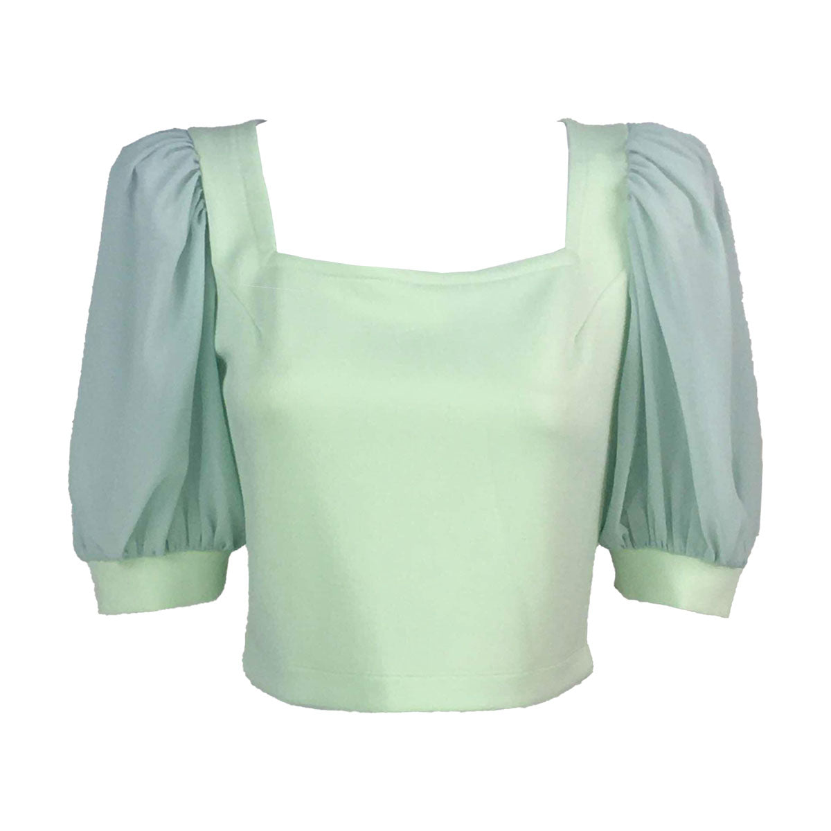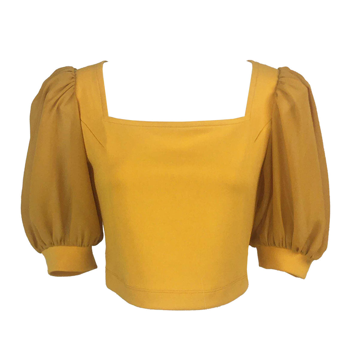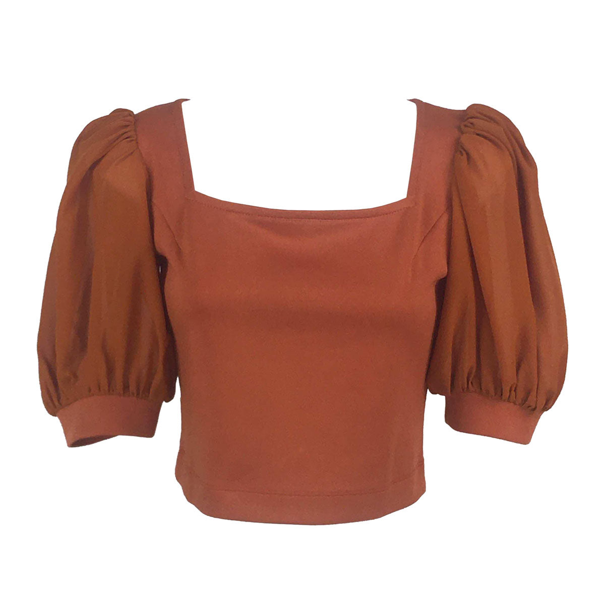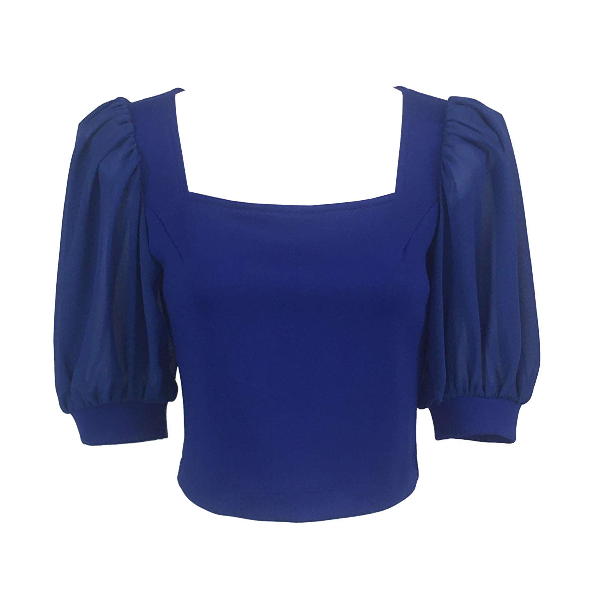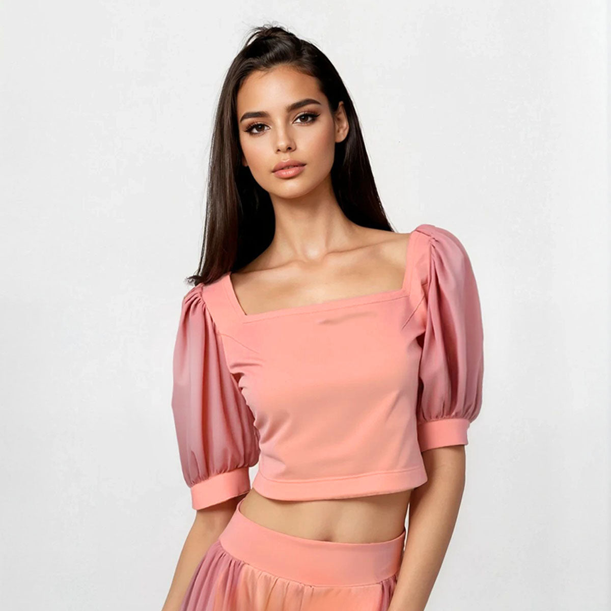 This square neck neoprene top offers a perfect blend of structure and softness. Its stretchable fabric ensures a comfortable, flattering fit, while the chiffon flowy puff sleeves add an elegant, feminine touch. Ideal for both casual and dressy occasions, this top elevates your style with effortless charm.