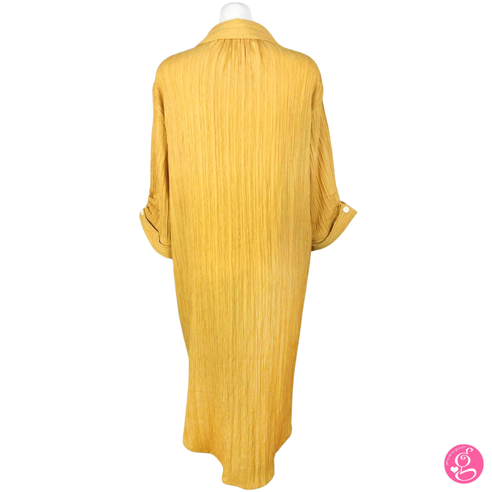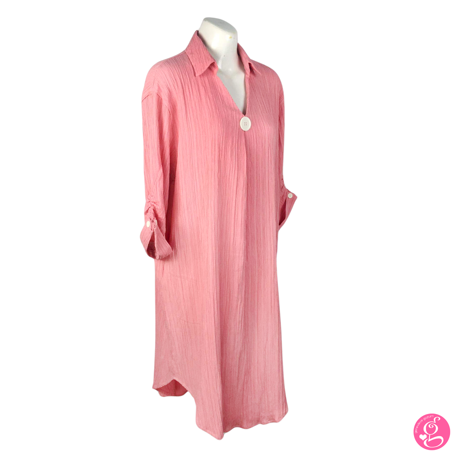 The Genevieve Gozum Facy Crepe Easy Shirt Dress is a classic style, loose fitting, knee length dress.