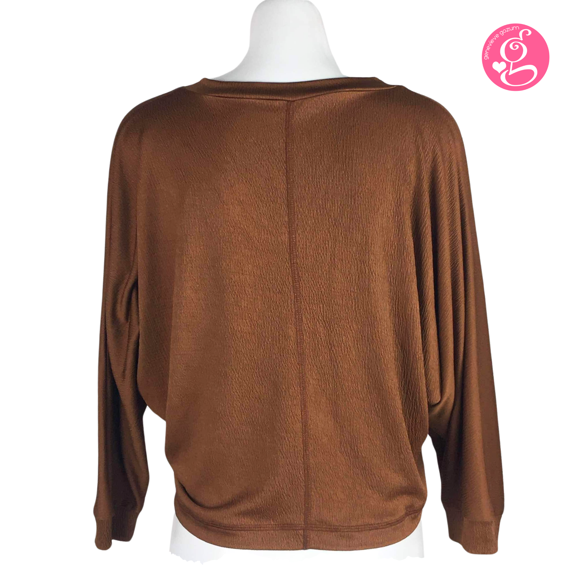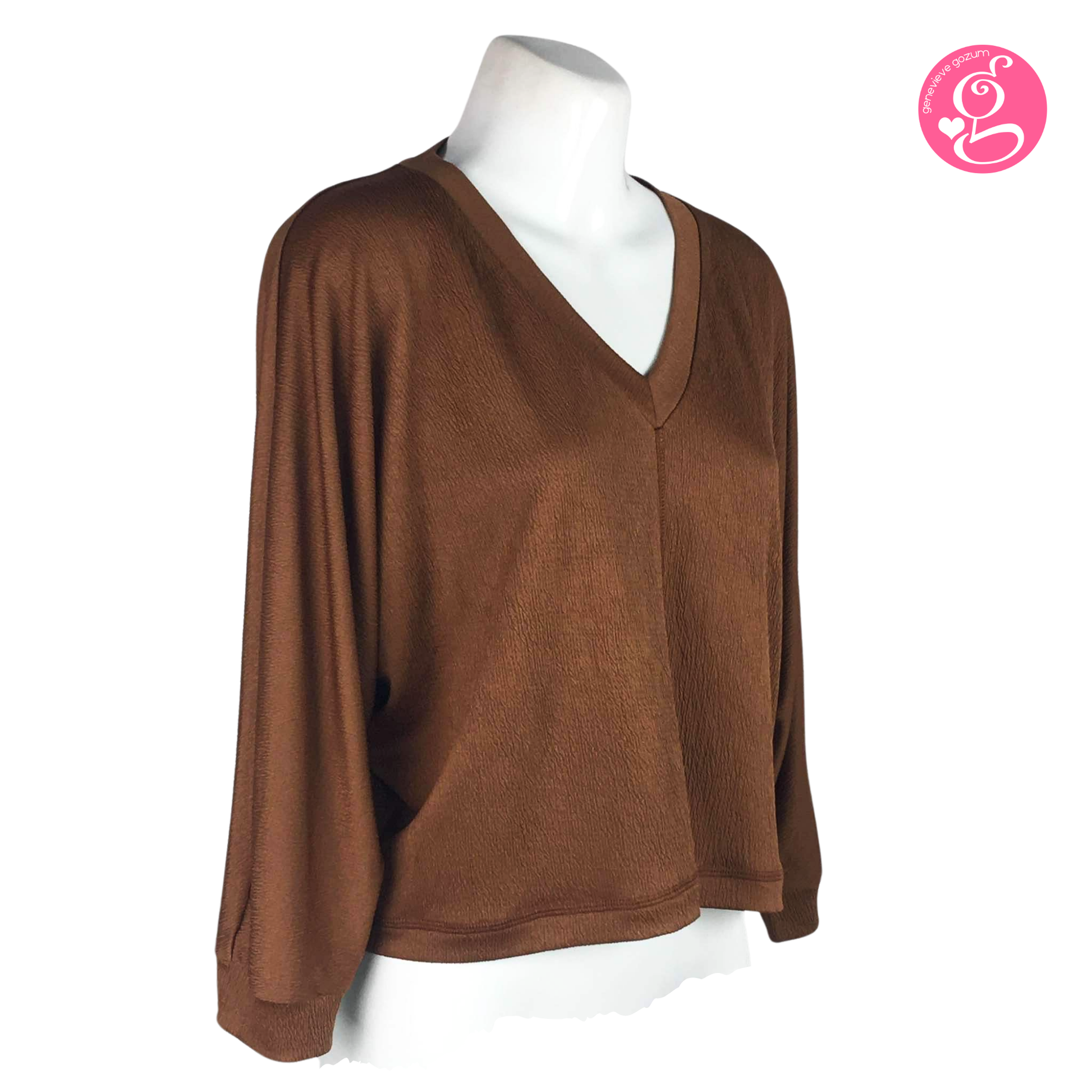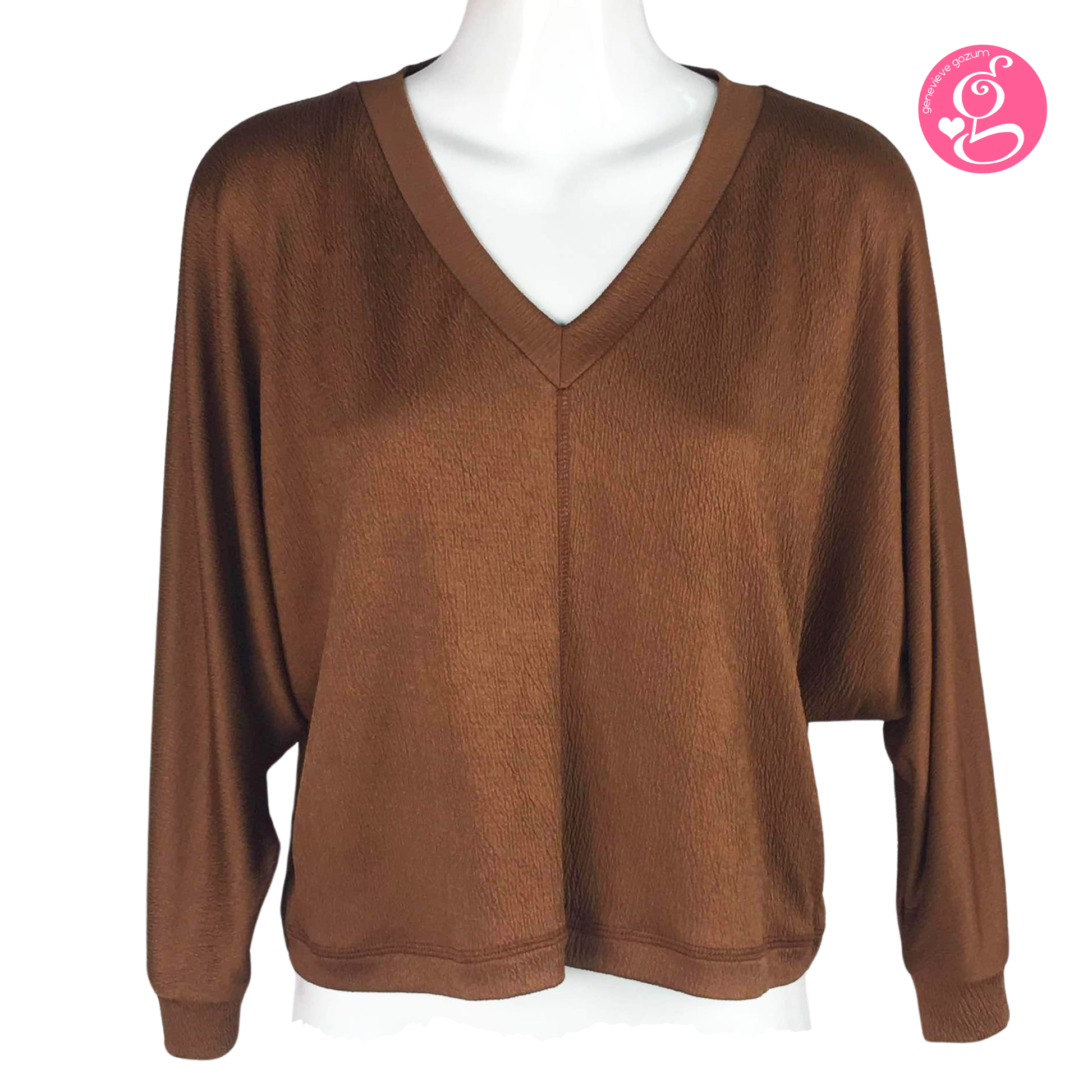 Genevieve Gozum Stitch Crepe Pullover Blouse with Dolman Sleeves & V Neck