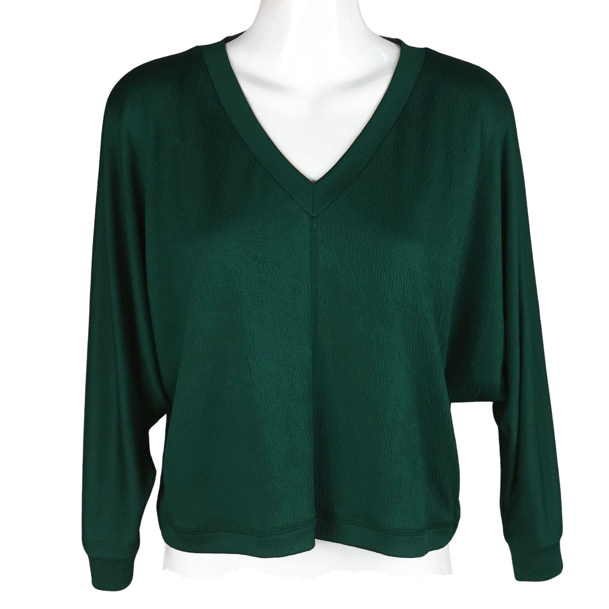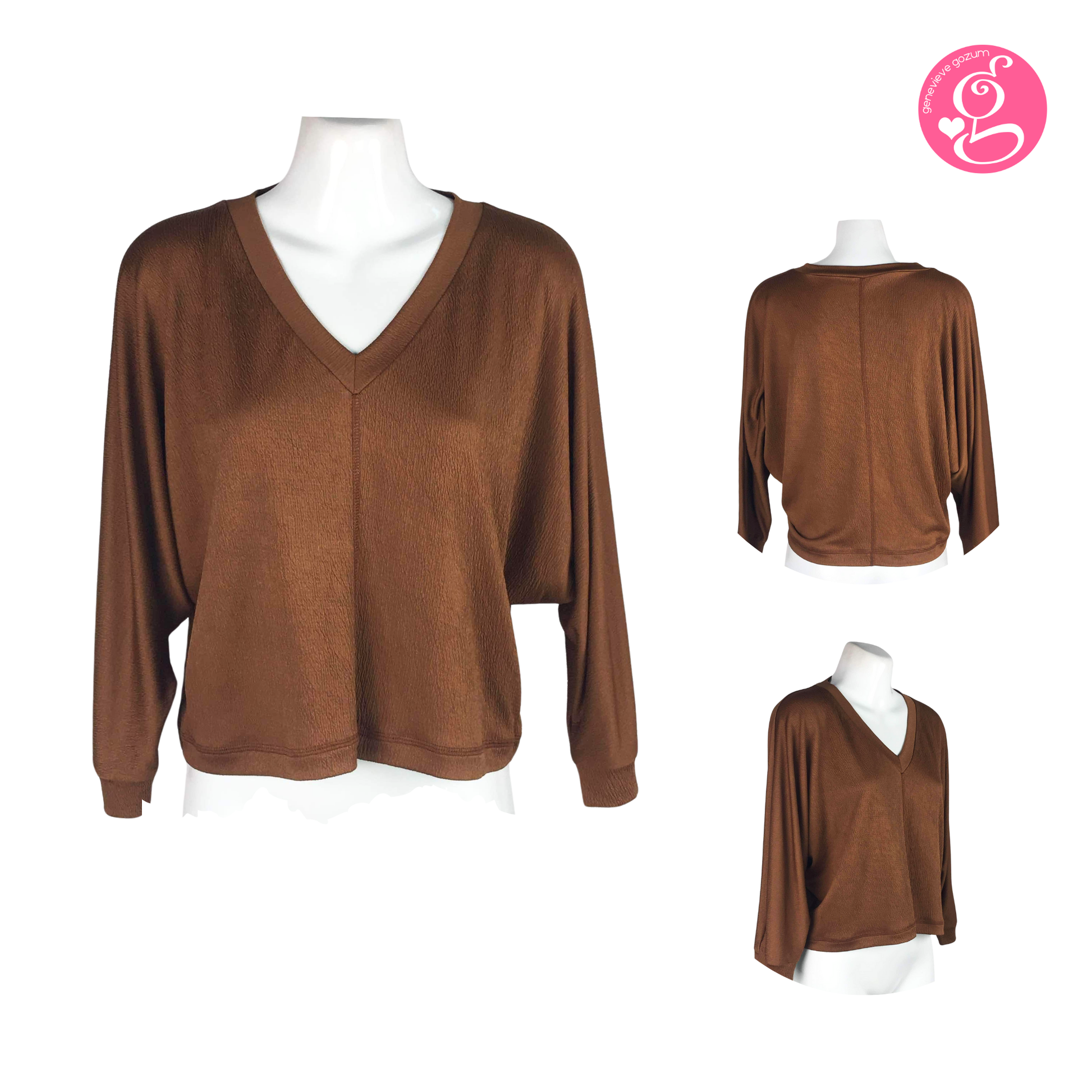 Elevate your wardrobe with the V-neck dolman blouse from Genevieve Gozum, the V-neck version of our best-selling pullover. This stylish blouse features trendy 3/4 length dolman sleeves that add a touch of sophistication to any outfit. Crafted from soft and comfortable stitch crepe, it offers a perfect blend of stretch and ease, making it a versatile piece you'll reach for again and again.