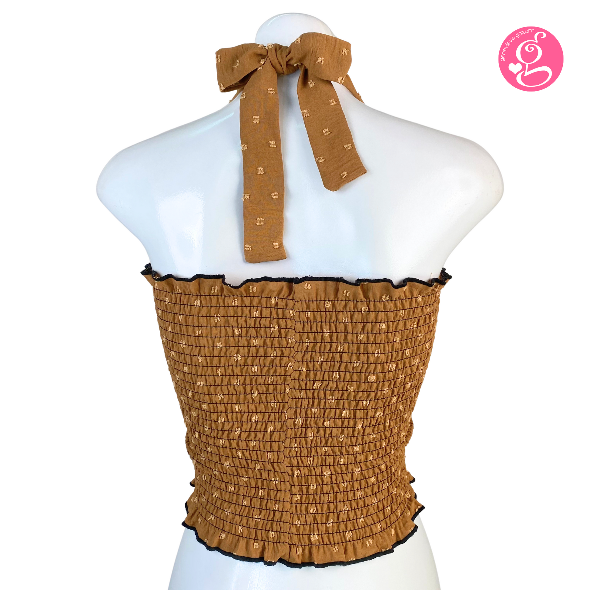 Introducing the Genevieve Gozum Sweet As Pie Tube Top with Multi-Way Strap — a versatile wardrobe staple designed for all seasons. Crafted from cool and comfortable cotton material with all over smocking on the body and multi-way shoulder straps, this top boasts a easy silhouette that pairs effortlessly with any ensemble.
