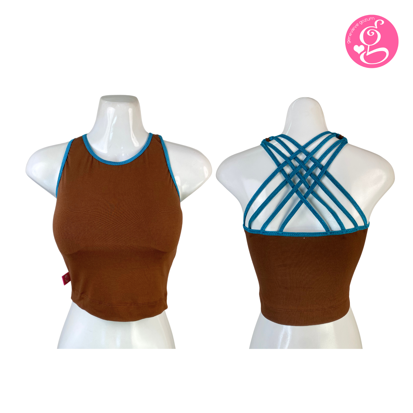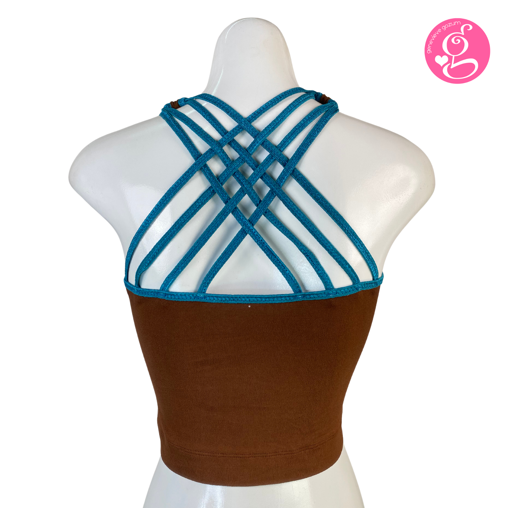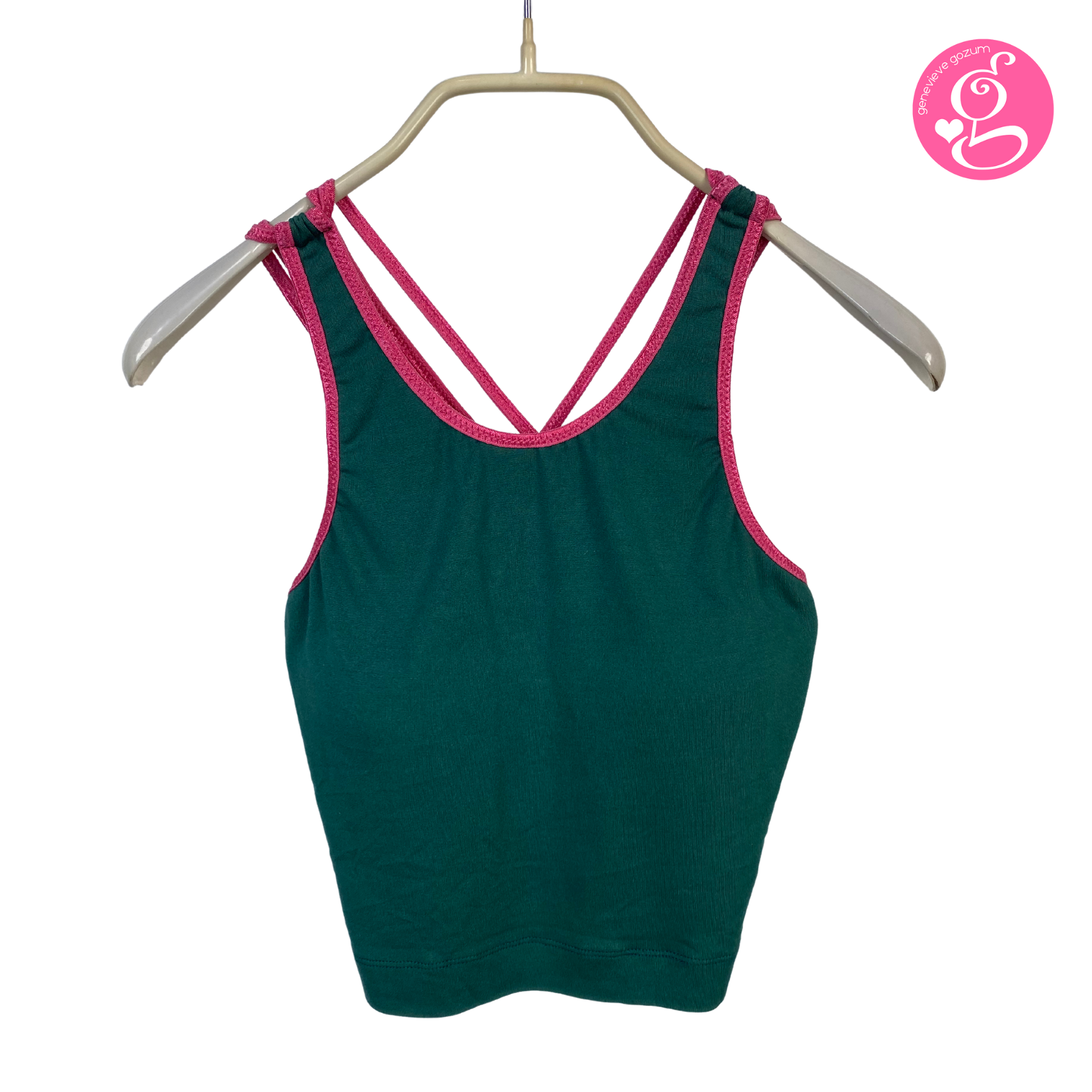 The Get Strappy Woven Back Tank Top is the perfect versatile piece for any occasion. With built-in bust pads and crisscross, strappy details, it offers both comfort and style. Made with cotton rich knit fabric and contrast details, it can be dressed up or down for a casual or fashionable look. Additionally, it's perfect for light exercise like yoga and dance.