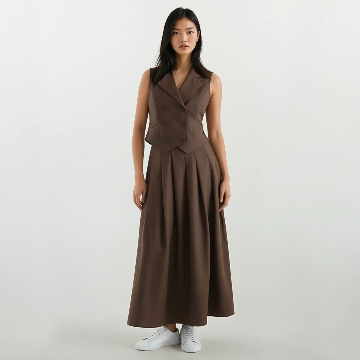 Step into confidence with the Girl Boss Double Overlap Vest and Skirt Set. Featuring a double-button vest with sleek lining and a flowing maxi skirt, this duo combines classic style with playful versatility. Wear them together for a bold, polished look or mix and match each piece with your favorite wardrobe staples to create endless chic outfits. Perfect for the girl boss who loves a little fun with her fashion!