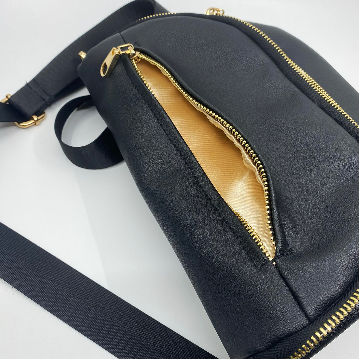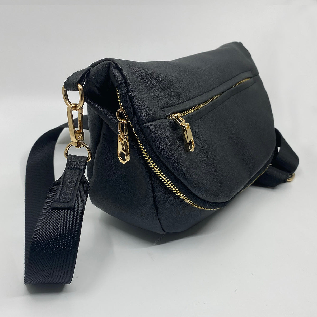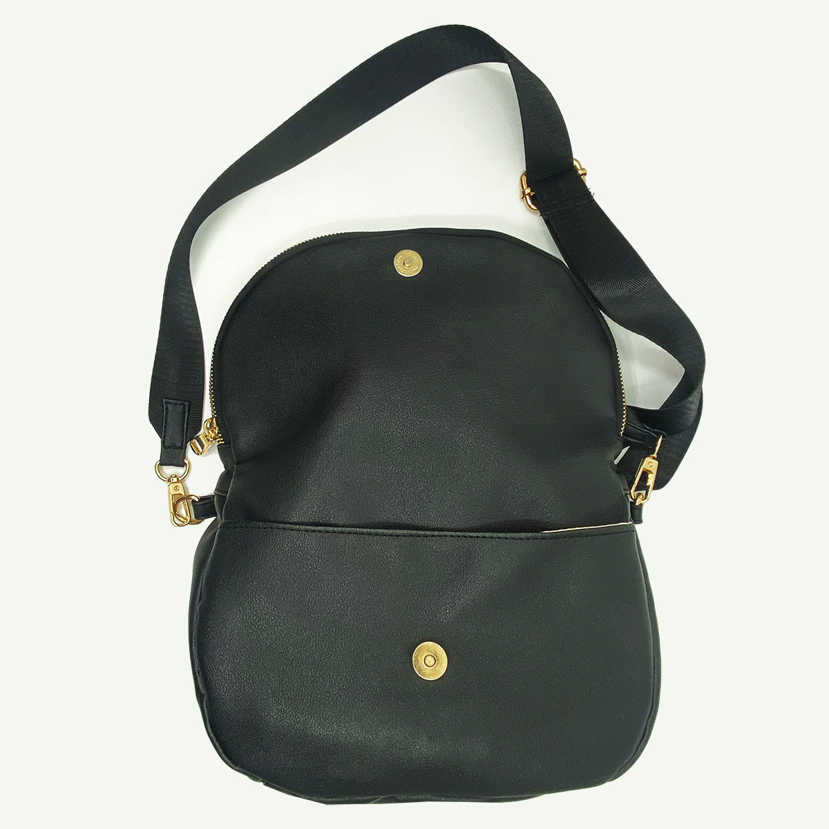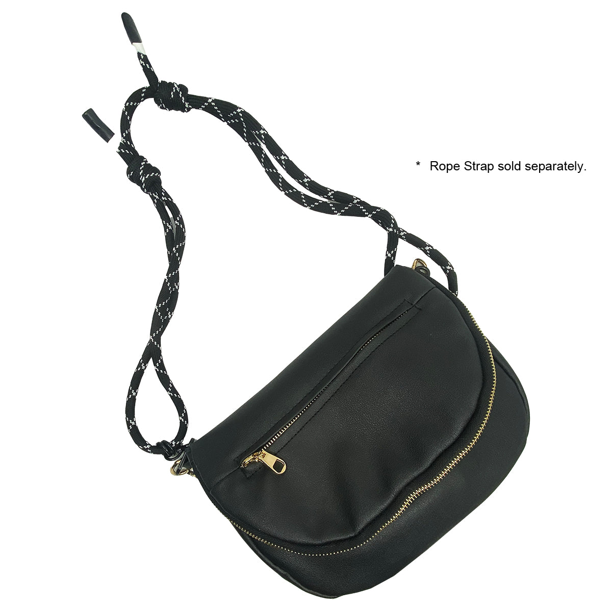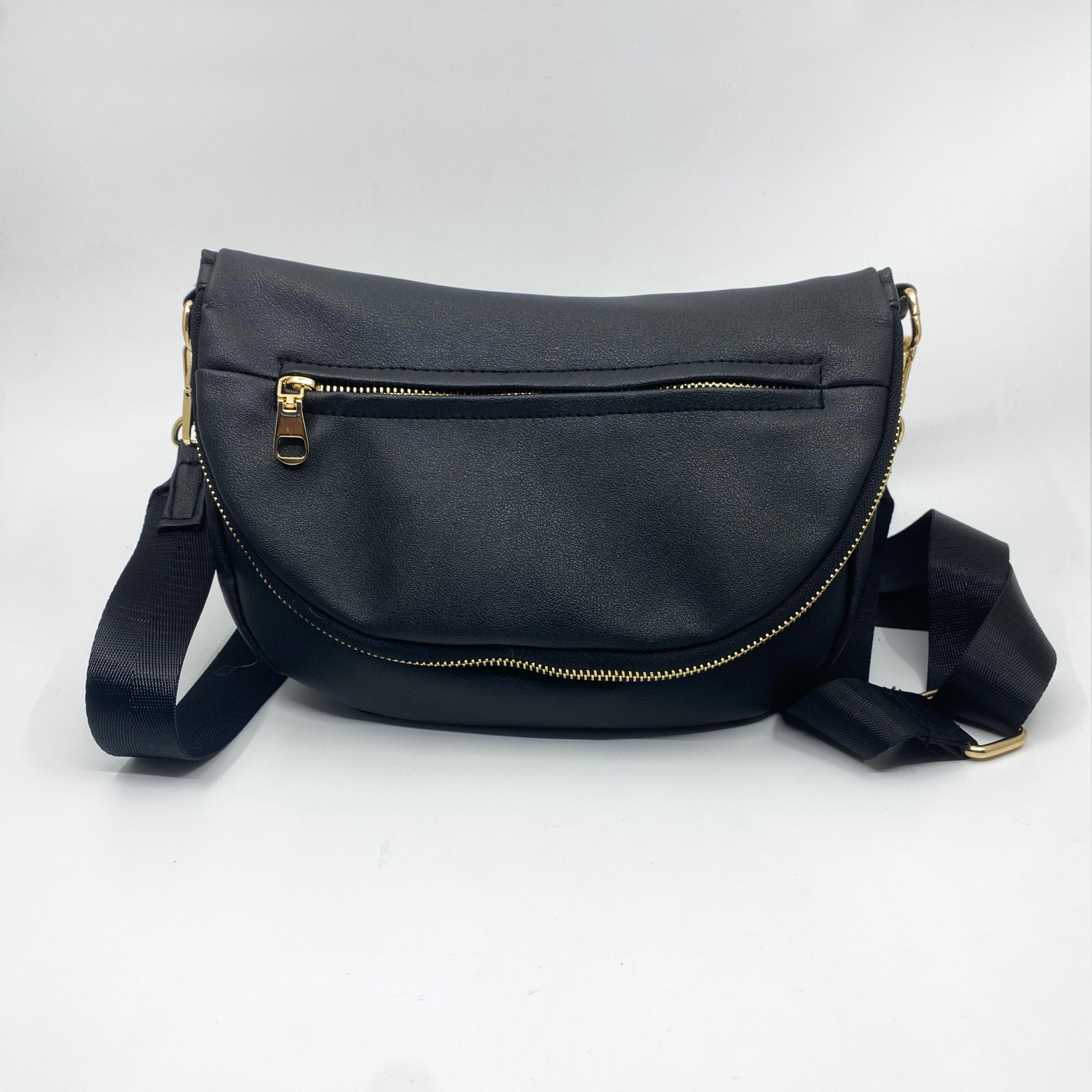 This beige half-moon bag features a sleek silhouette, gold hardware, a top zip pocket, and an adjustable strap for easy, everyday style. Soft, structured, and effortlessly cool — your go-to for on-the-go days.