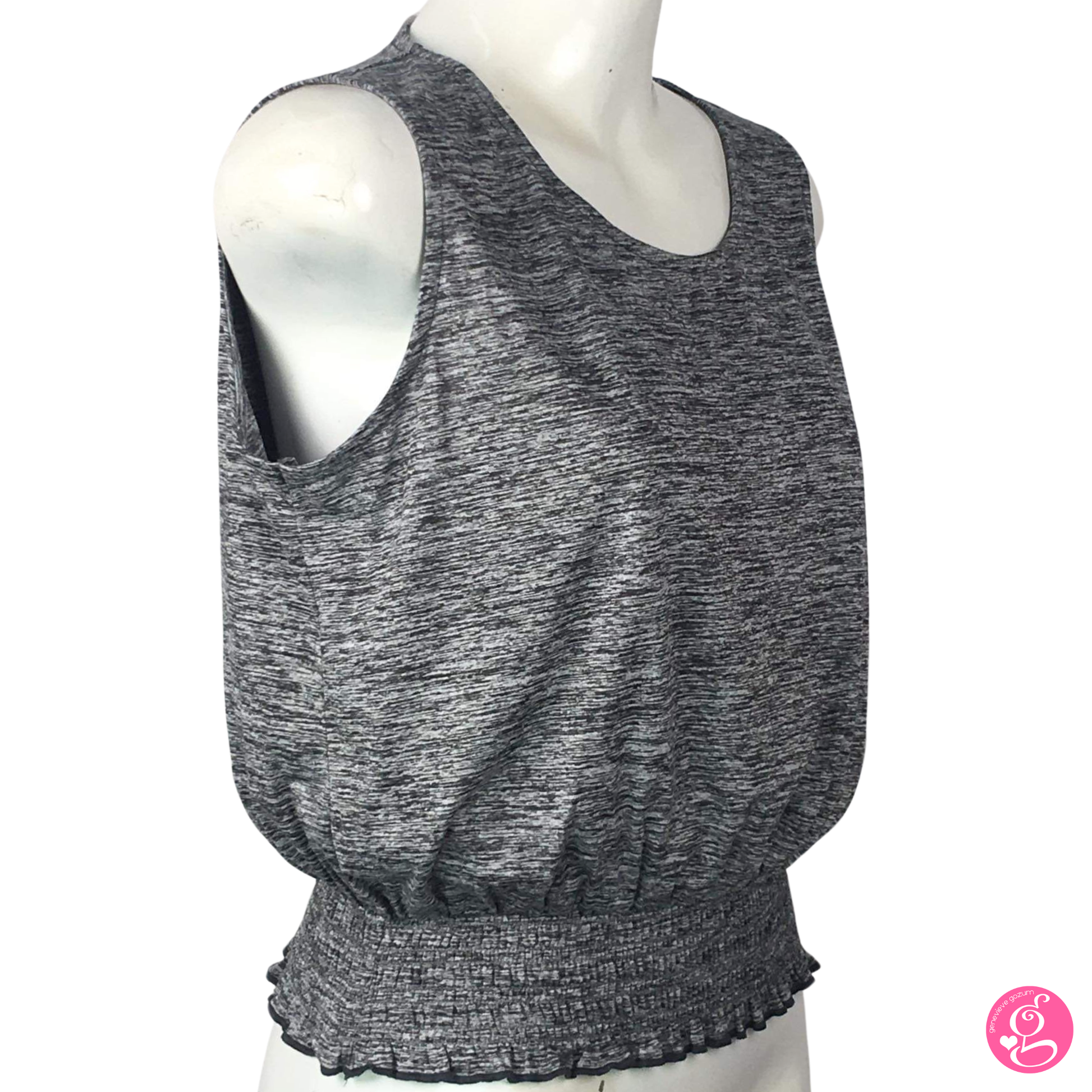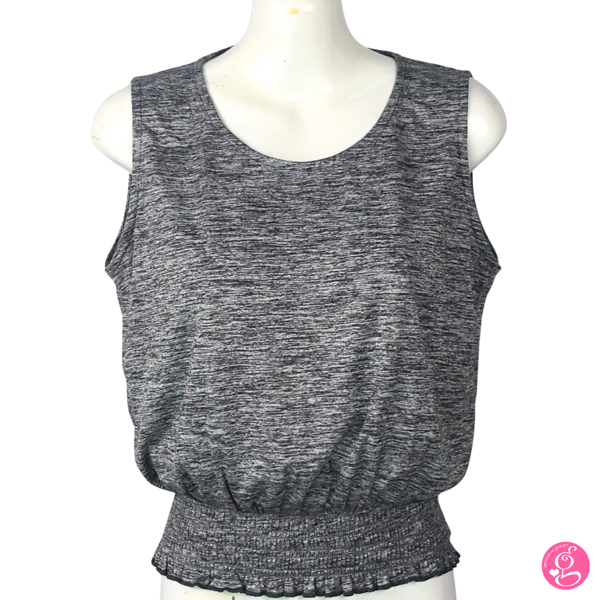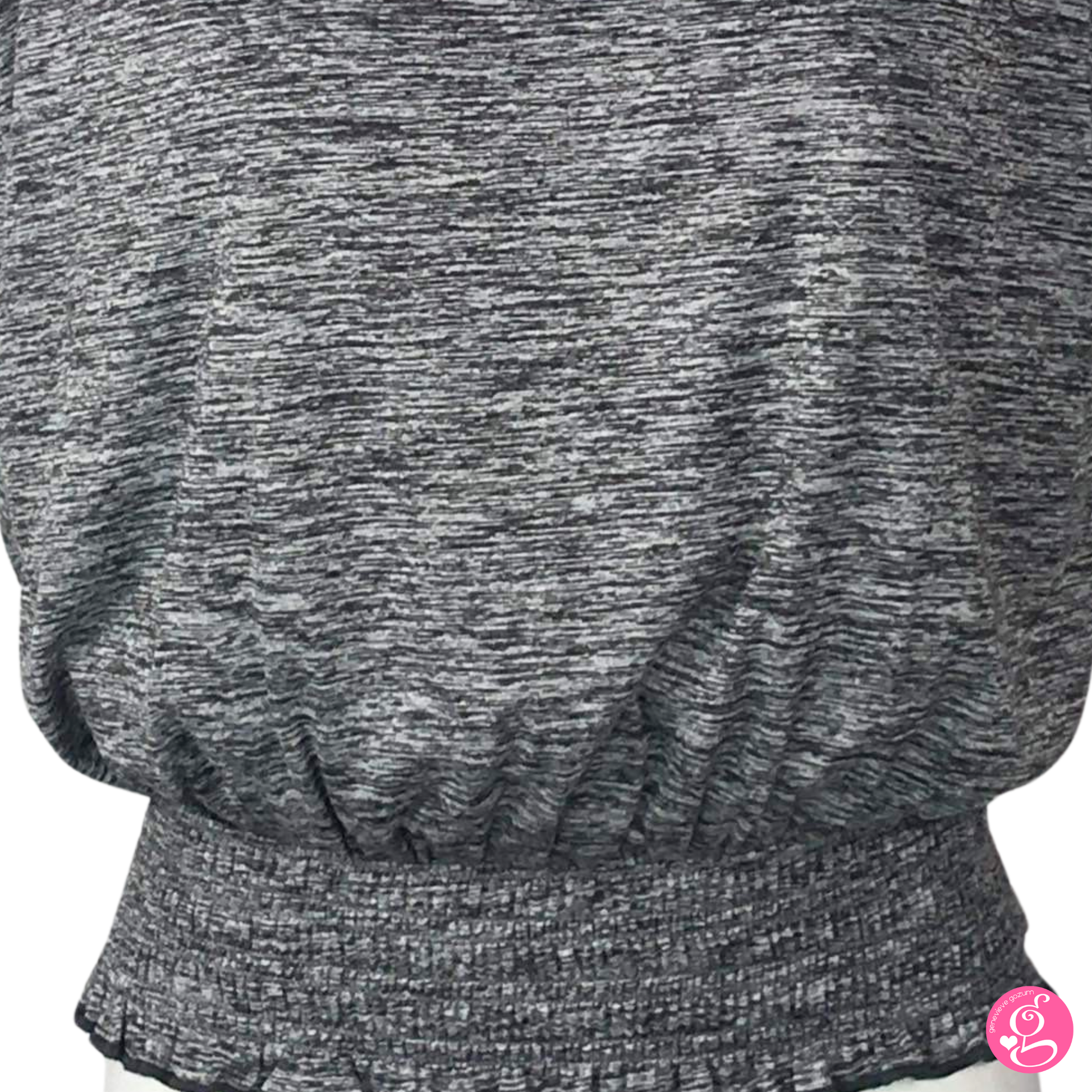 Introducing the Genevieve Gozum Heathered Gray Blouson — a versatile wardrobe staple designed for all seasons. Crafted from comfortable cotton spandex material with heathered knit detail, this loose fitting top boasts a easy silhouette that pairs effortlessly with any ensemble.