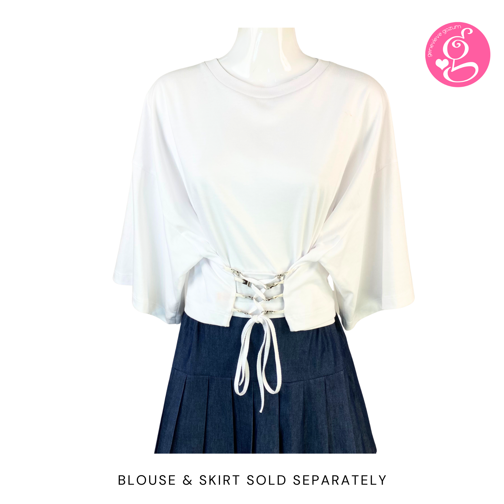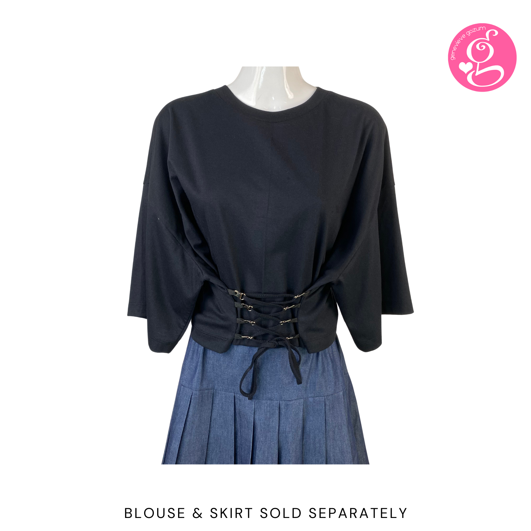 Introducing the Genevieve Gozum Kirsten Corset Tee — a versatile, unique t-shirt with reversible corseting detail.