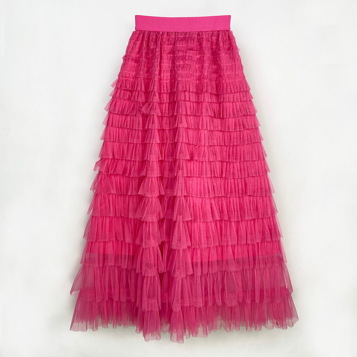 This stunning maxi skirt features cascading ruffles that start small at the top and grow into beautiful, fuller layers toward the bottom. The garterized waistband ensures a flattering, snug fit that accentuates your curves. Whether you’re heading to a lively party or enjoying a laid-back day out, this skirt works for both occasions. Available in a rainbow of colors, it’s easy to style with your favorite tops and accessories for endless outfit possibilities.