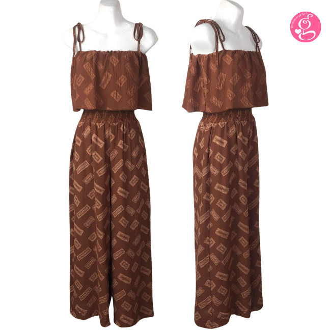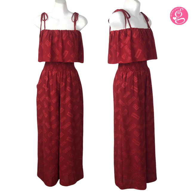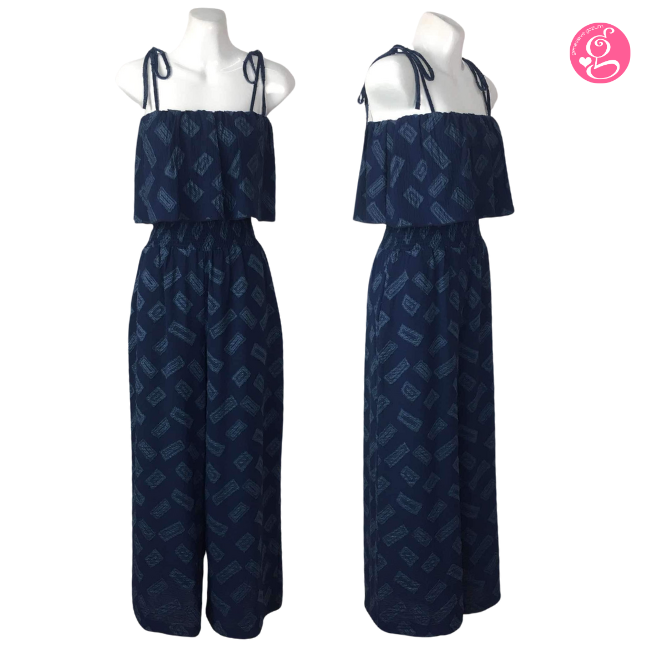 The Genevieve Gozum Linen Blend Jacquard Cape Jumpsuit, is a versatile favorite among our customers. Made with jacquard linen blend fabric with geometric detail, it's designed to mix and match with other pieces in your wardrobe. It also offers a figure friendly fit. This set is a must-have addition to your wardrobe.