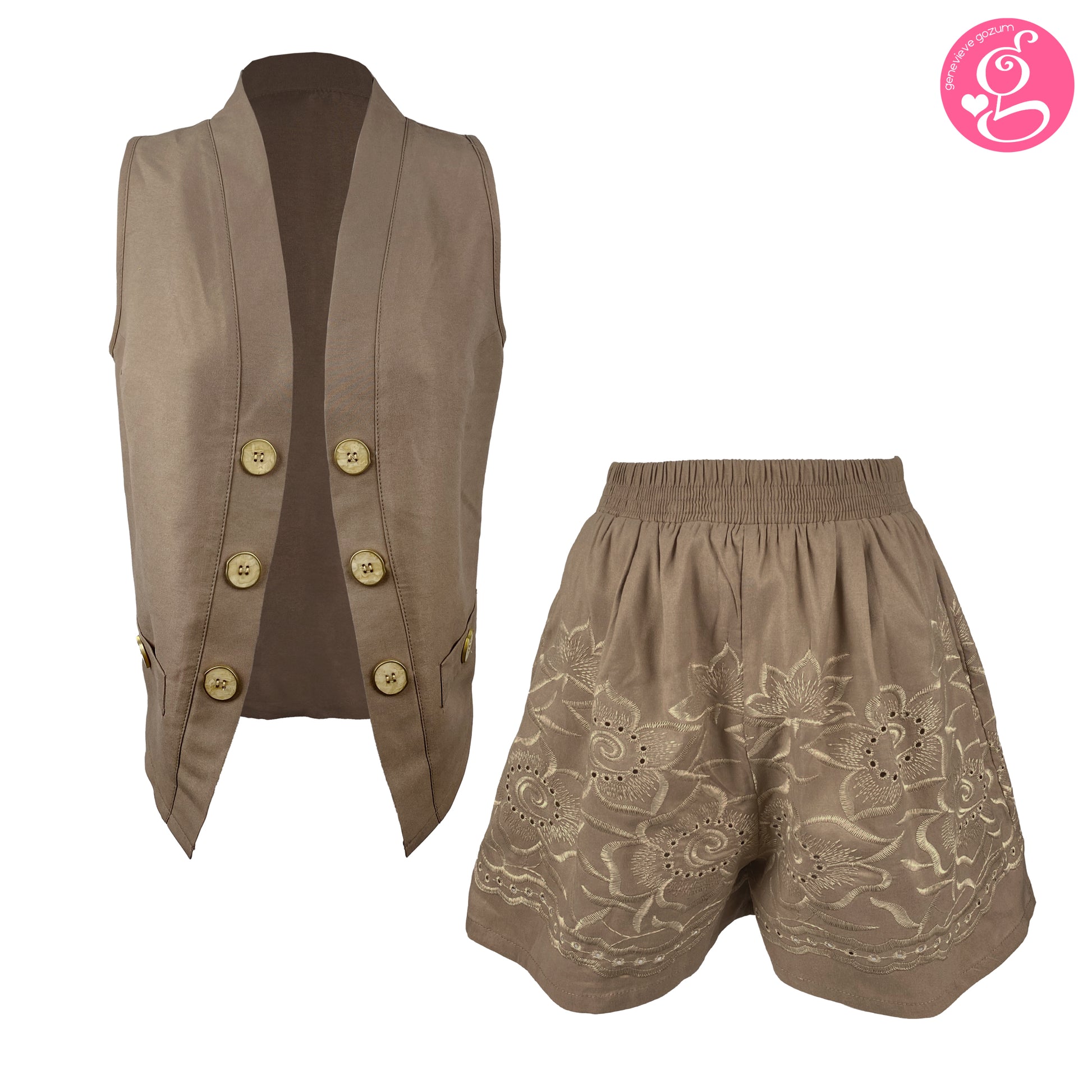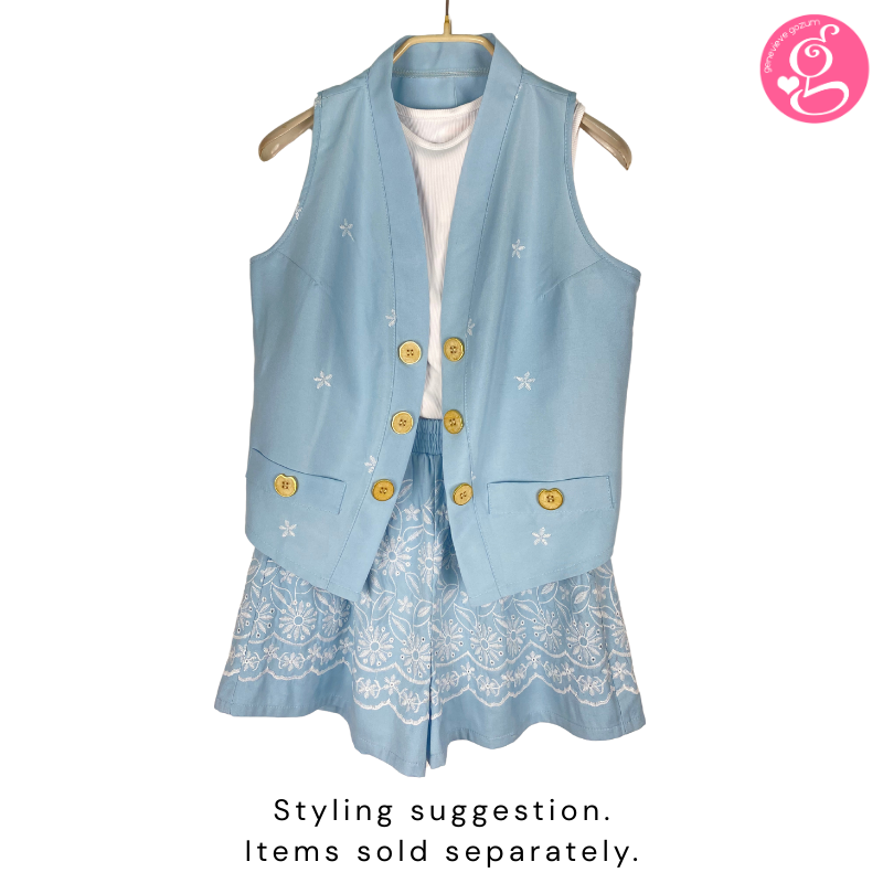 Cotton Embroidery Open Vest and Walking Shorts Set