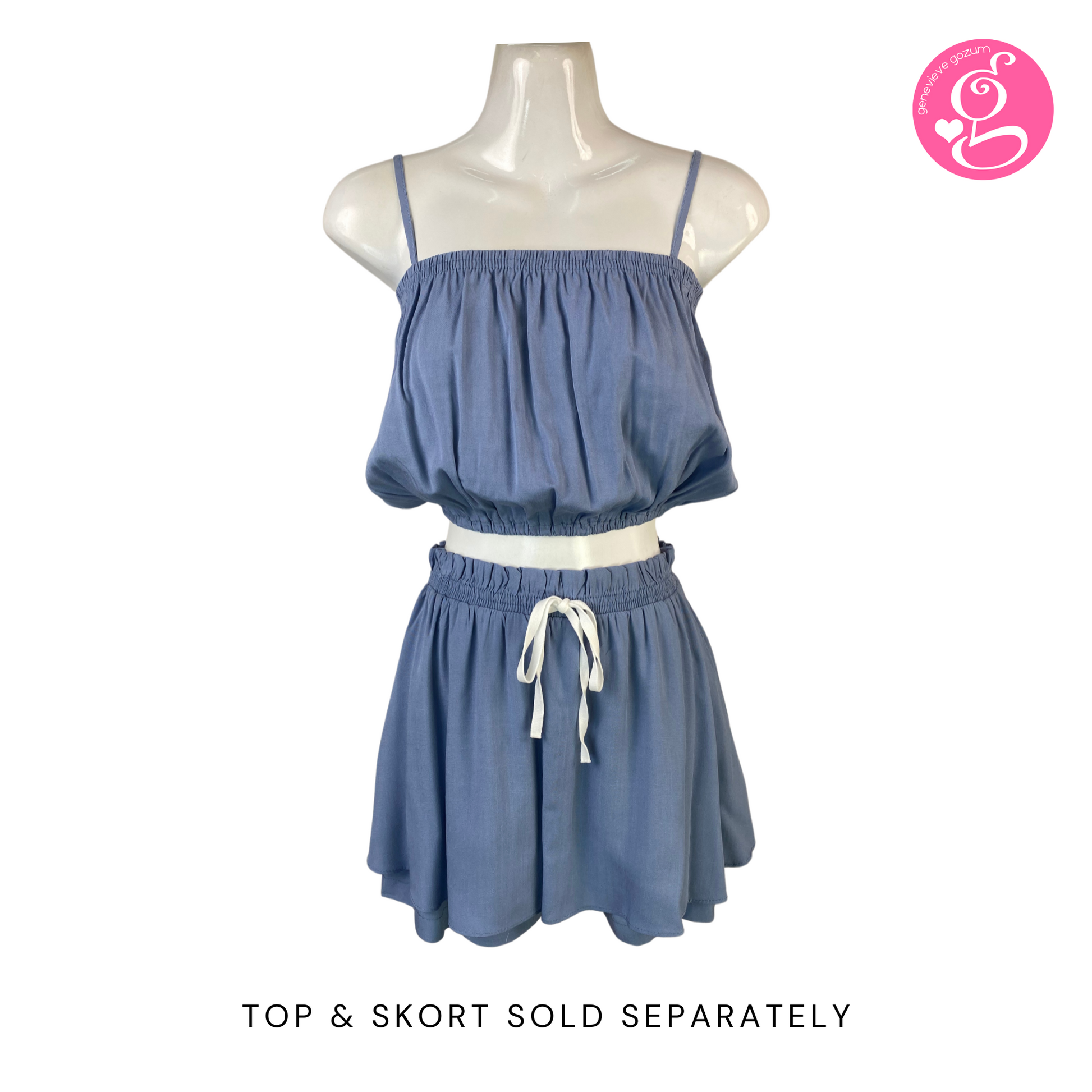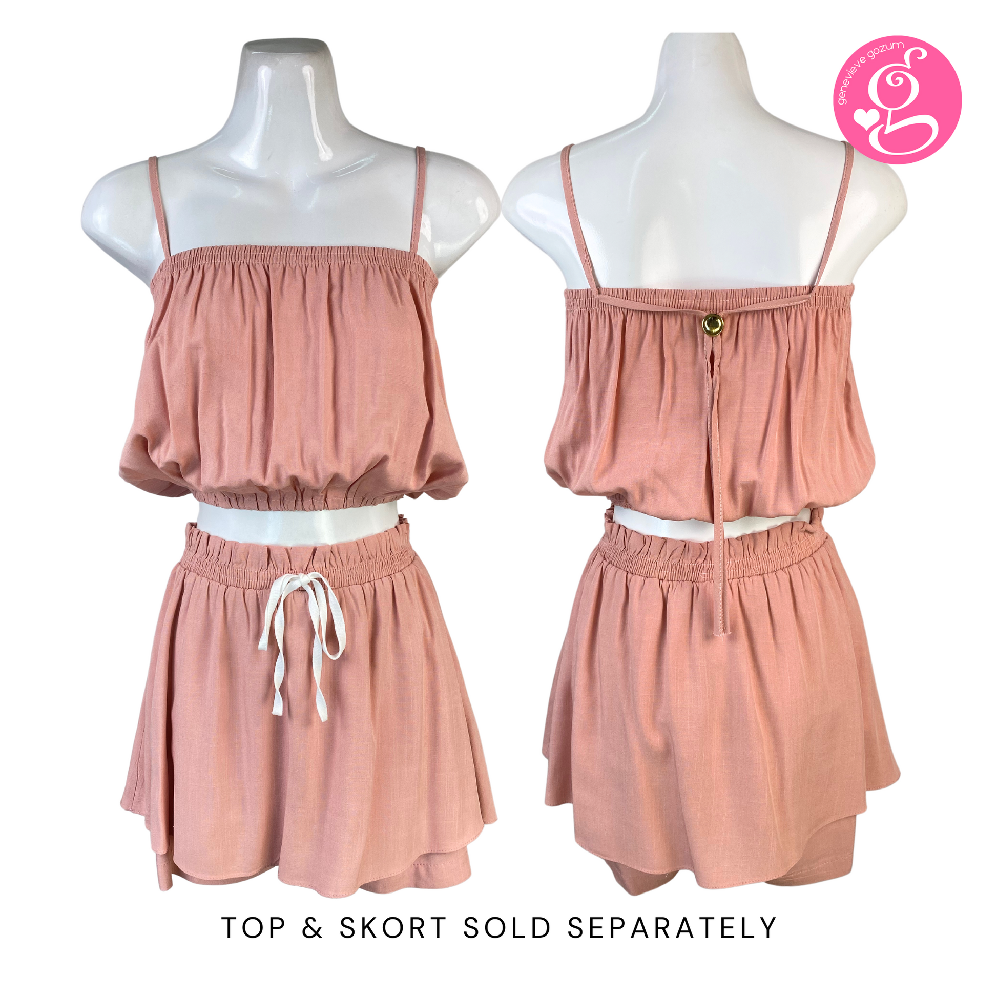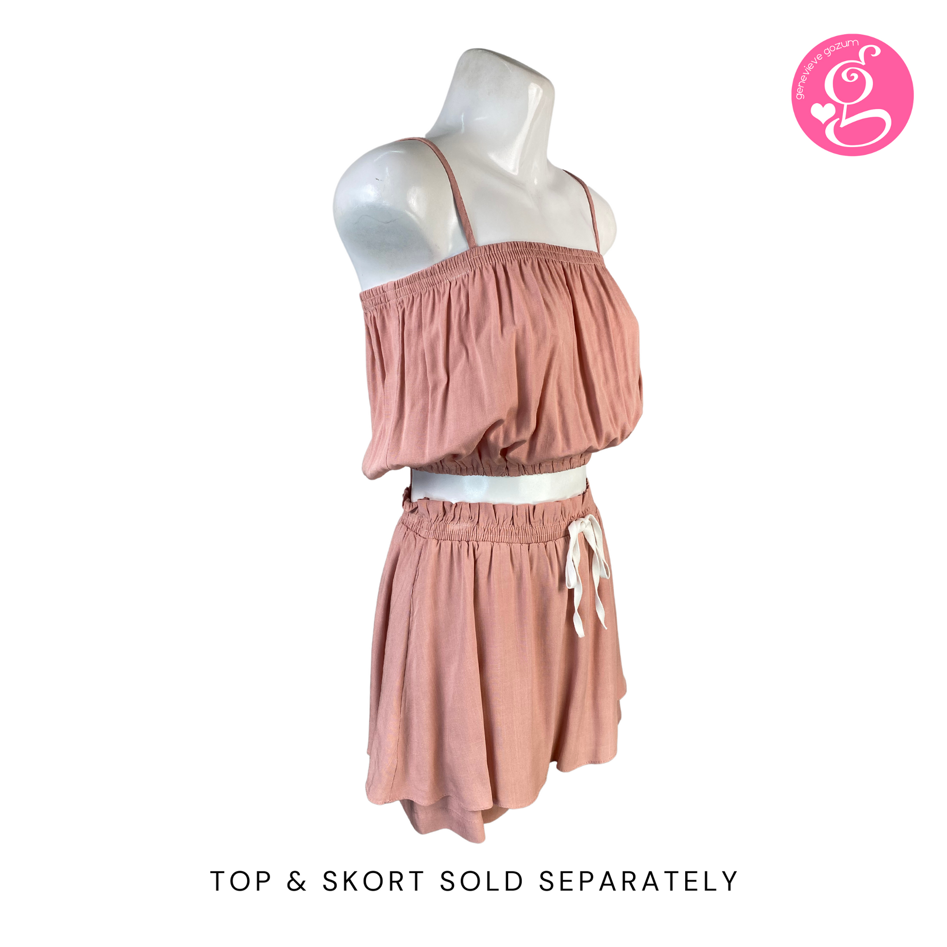 Achieve effortless comfort and style with our Love and Peace Top & Skort. The spaghetti tie shoulder top and flowy skort, made with soft and comfortable cotton, allow for a blousy, flattering fit. Mix and match these versatile pieces for a stylish weekend or casual look. Pieces sold separately.