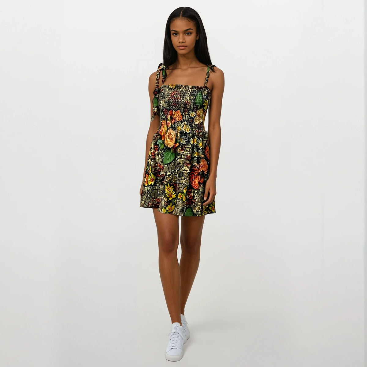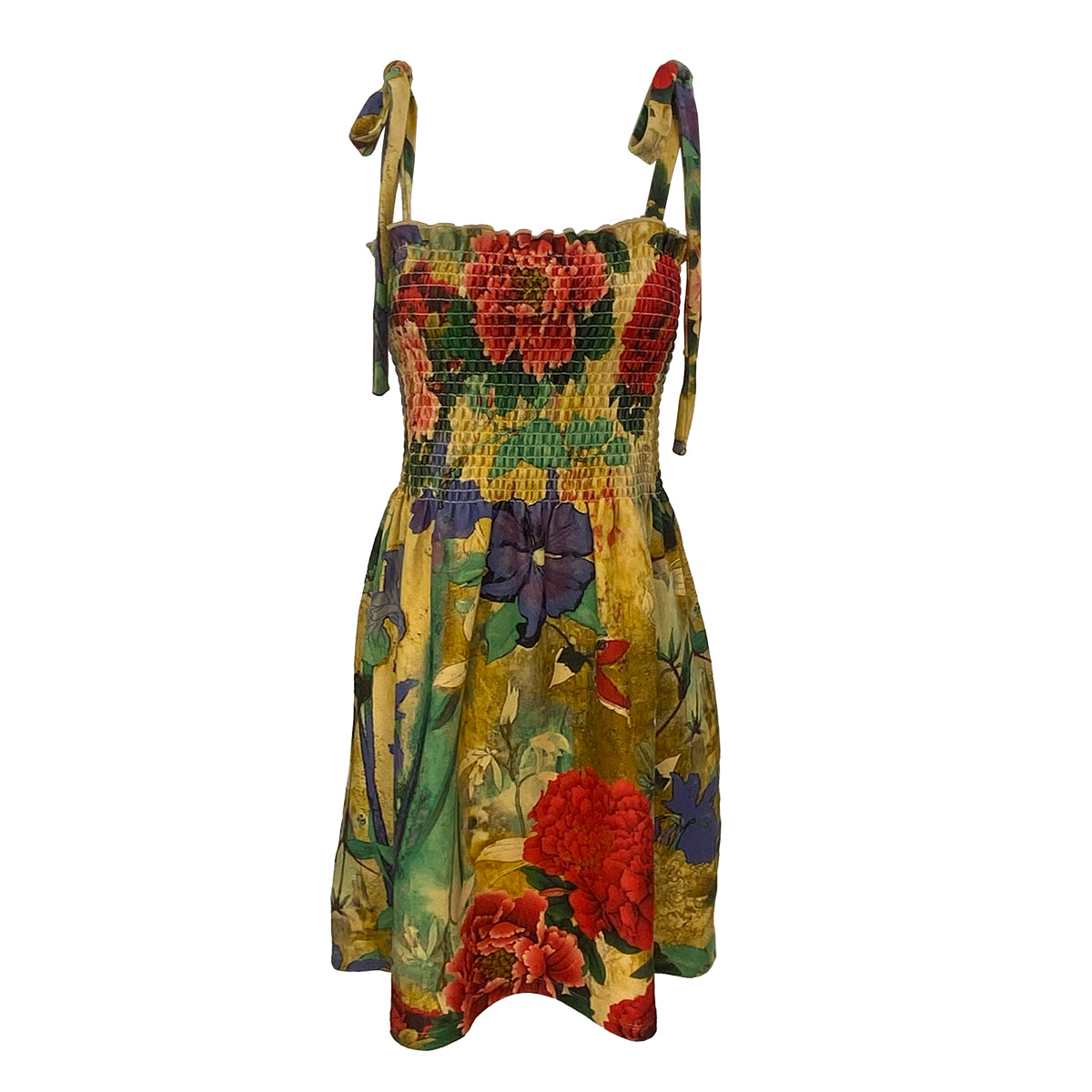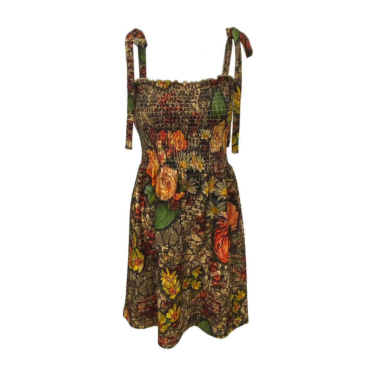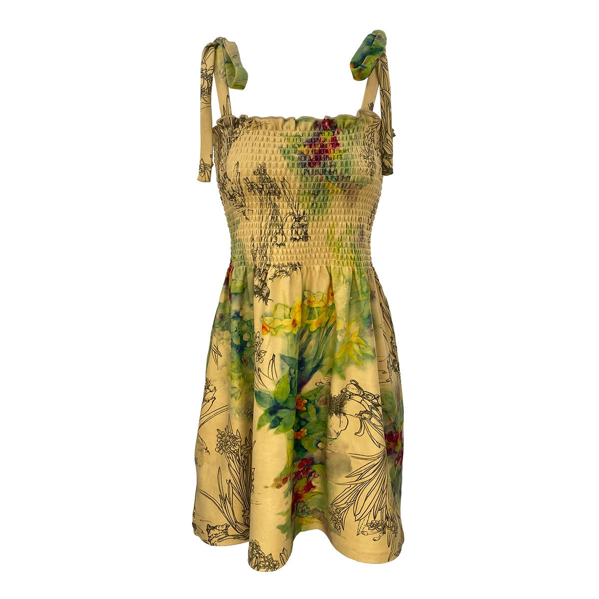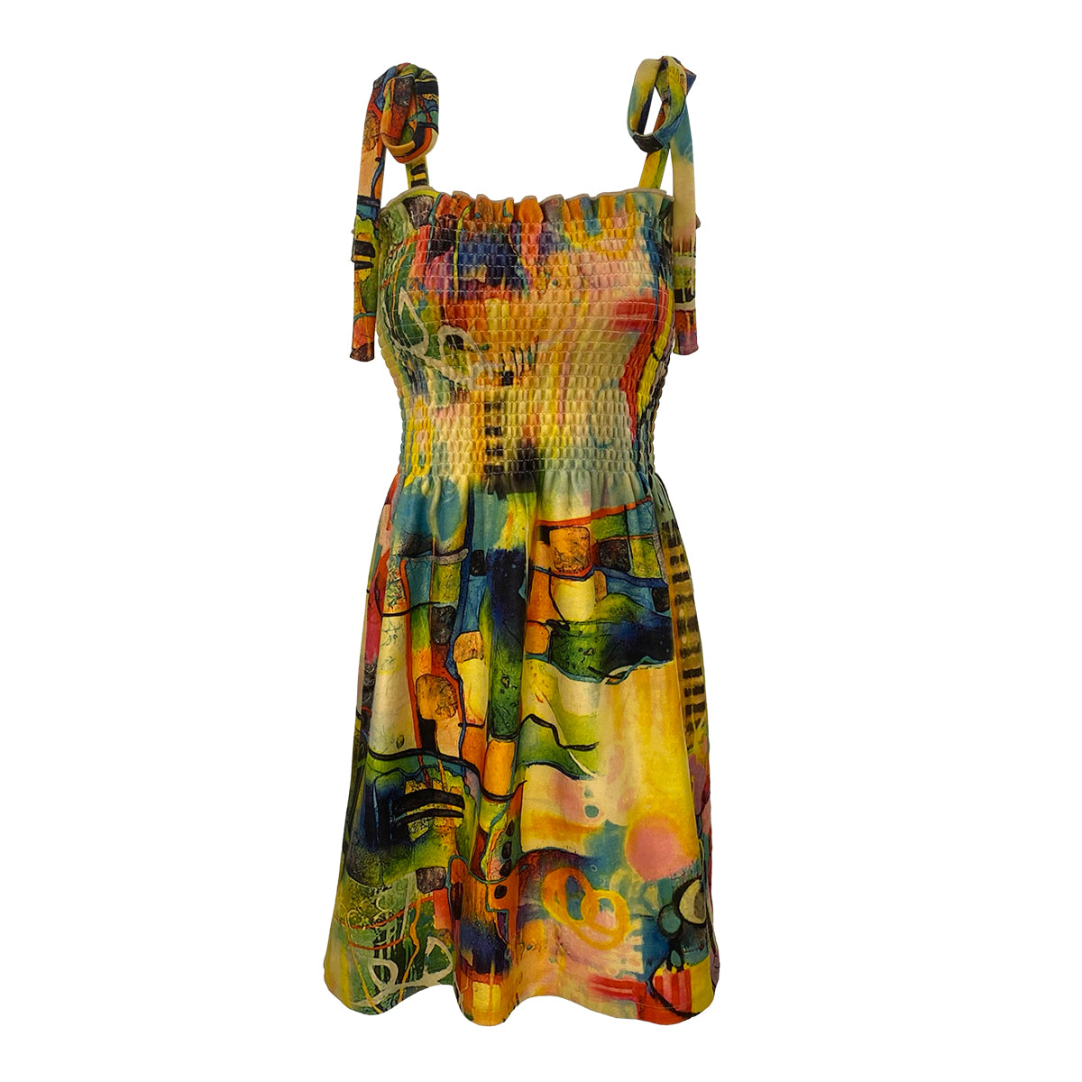 This digitally printed smocking mini dress features adjustable tie shoulders for a customizable fit. Crafted from our exclusive fabric, it offers an exceptionally soft, marshmallow-like feel for all-day comfort. Available in a variety of prints, this dress combines style and softness, making it a versatile addition to your wardrobe.