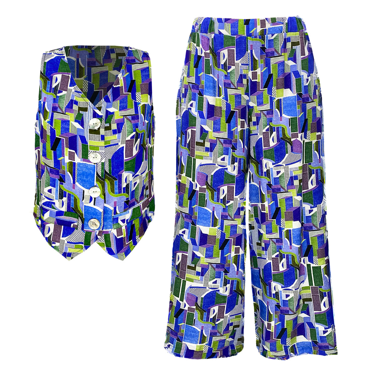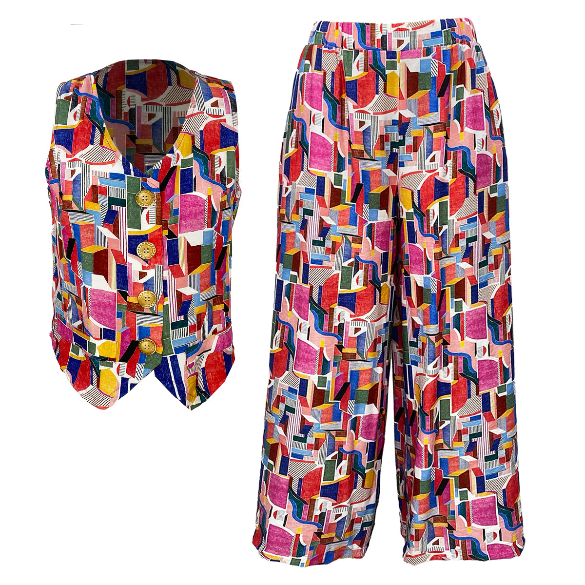 This vest and pants set, crafted from printed linen fabric, offers a classic style that's both versatile and stylish. Perfect for mix-and-match outfits and layering, it combines comfort with a timeless aesthetic, making it a must-have for creating effortless, chic looks.