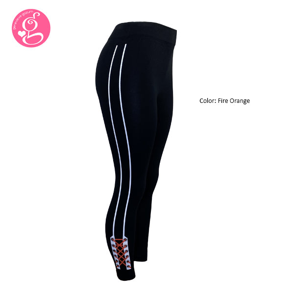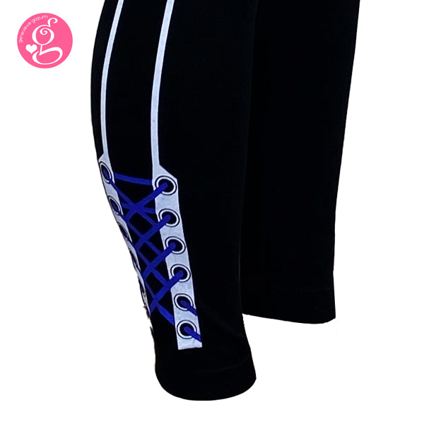 These leggings are high waisted for extra coverage and features body mapping & shoe lace detail.