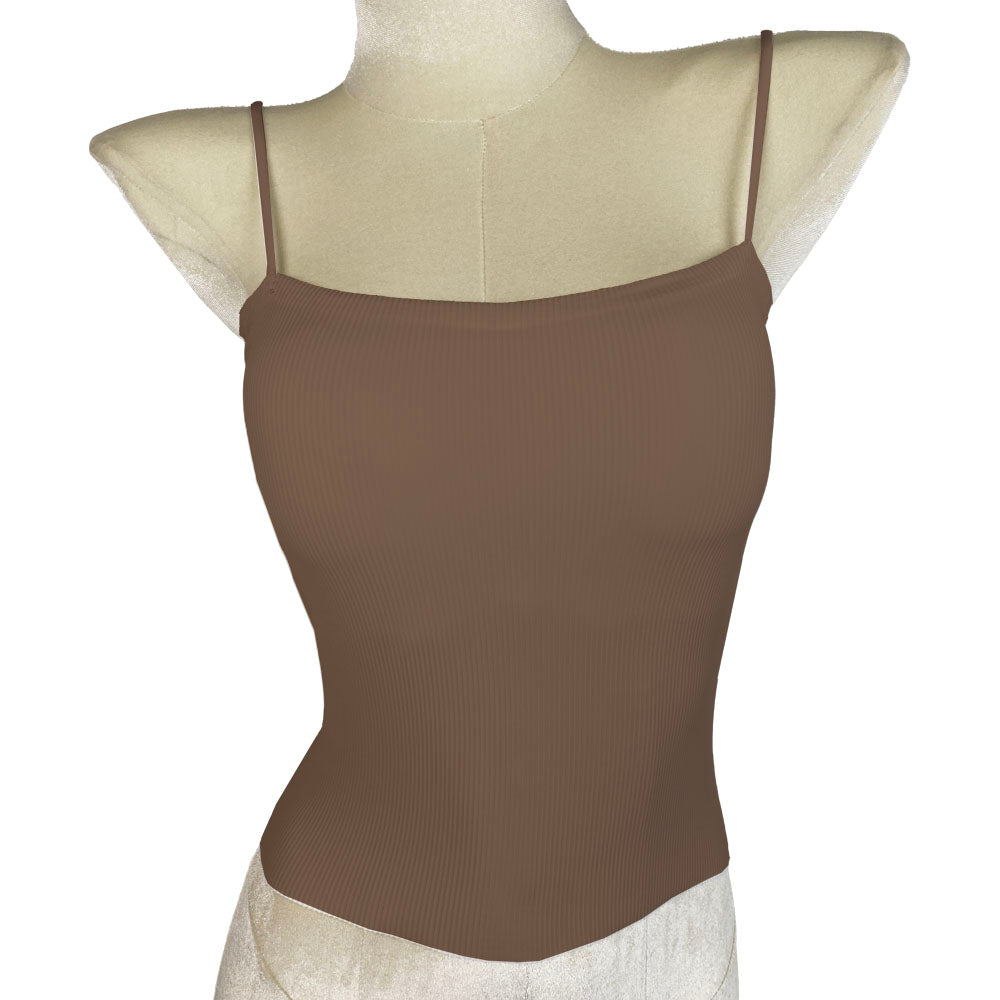 Seamless Straight Spaghetti Tank Top with Built in Bust Pads