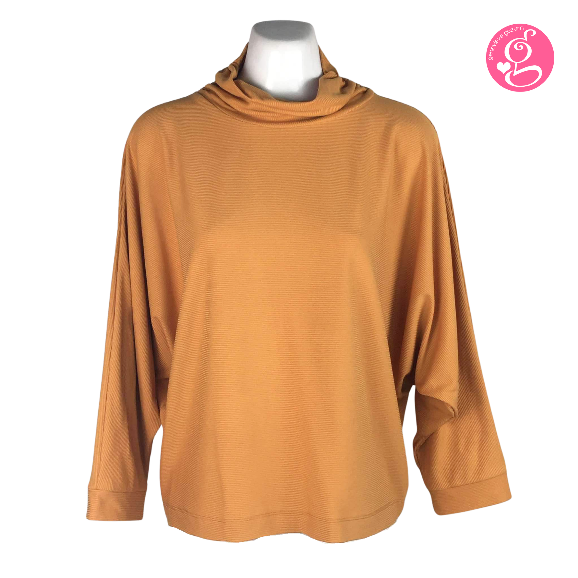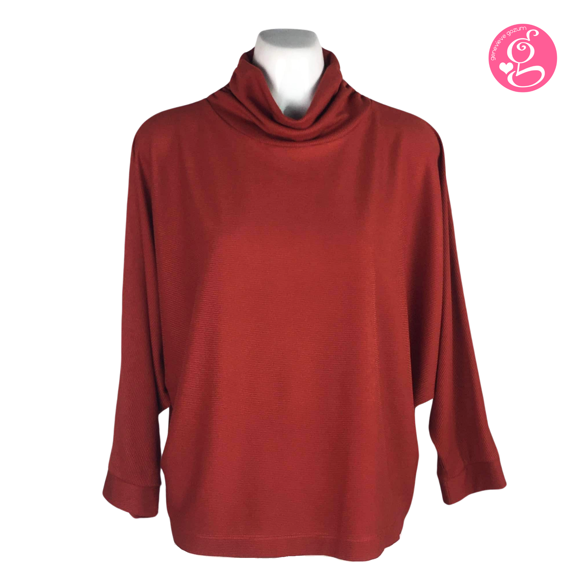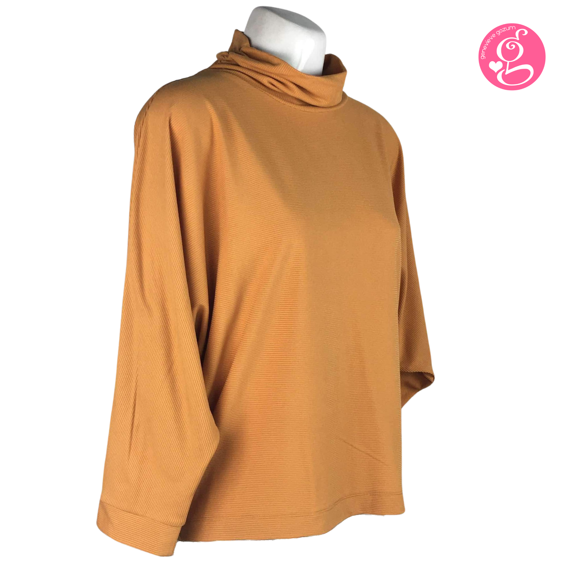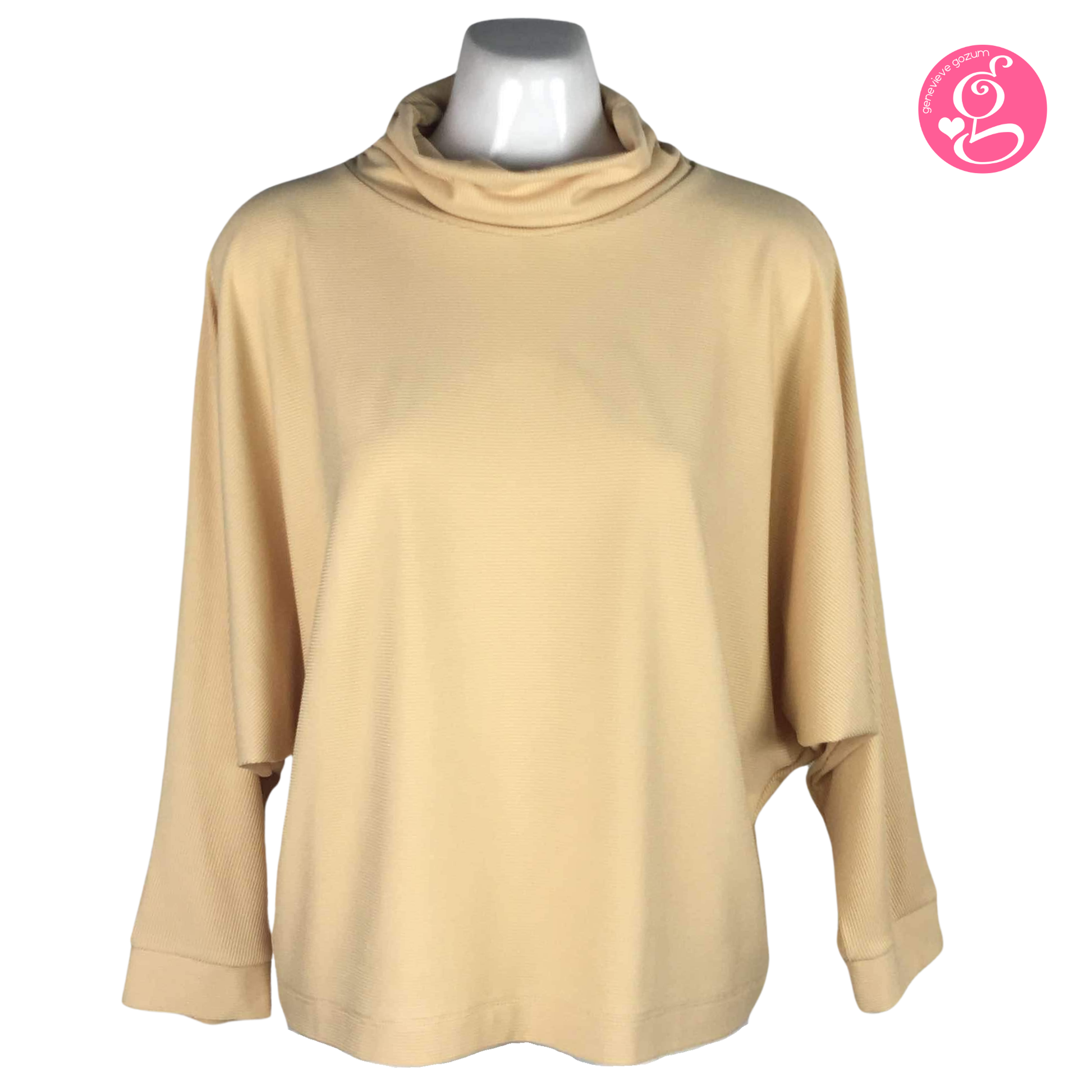 Elevate your wardrobe with the high neck dolman blouse from Genevieve Gozum, the turtleneck version of our best-selling pullover. This stylish blouse features trendy 3/4 length dolman sleeves that add a touch of sophistication to any outfit. Crafted from soft and comfortable cotton spandex, it offers a perfect blend of stretch and ease, making it a versatile piece you'll reach for again and again.