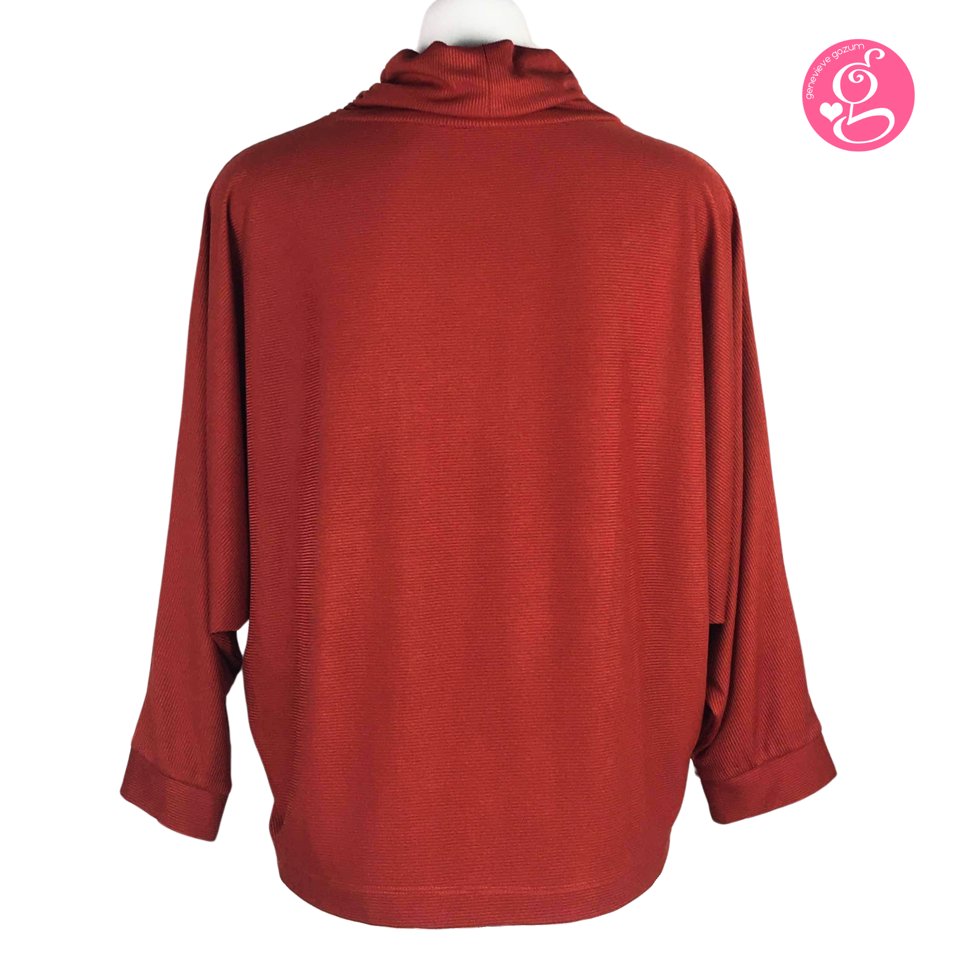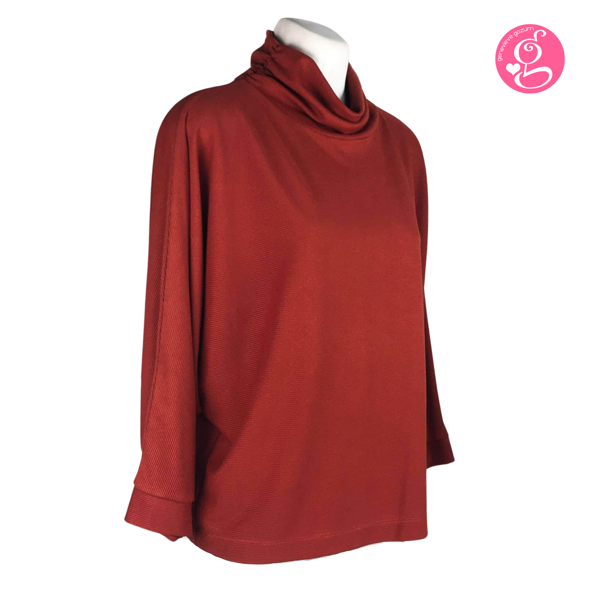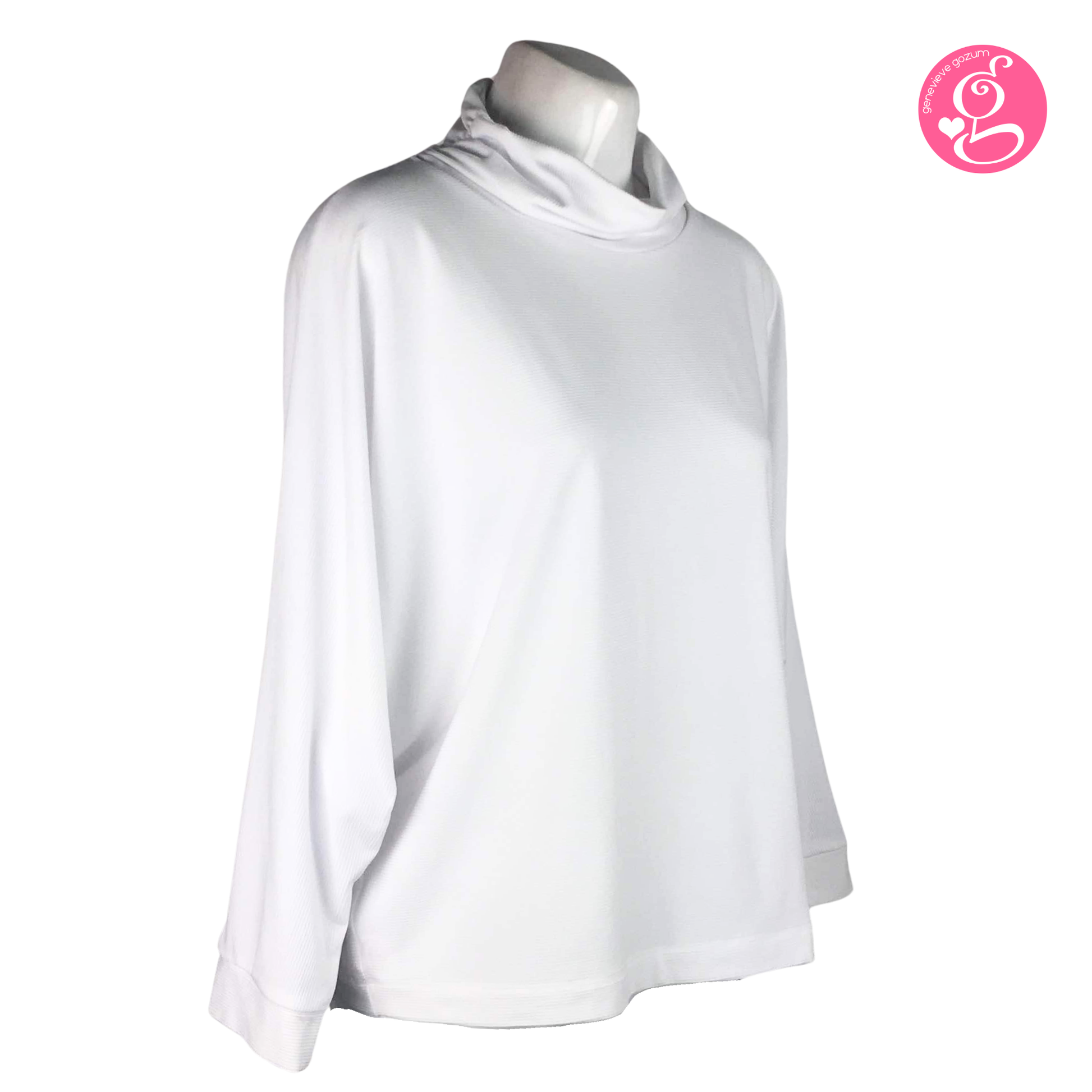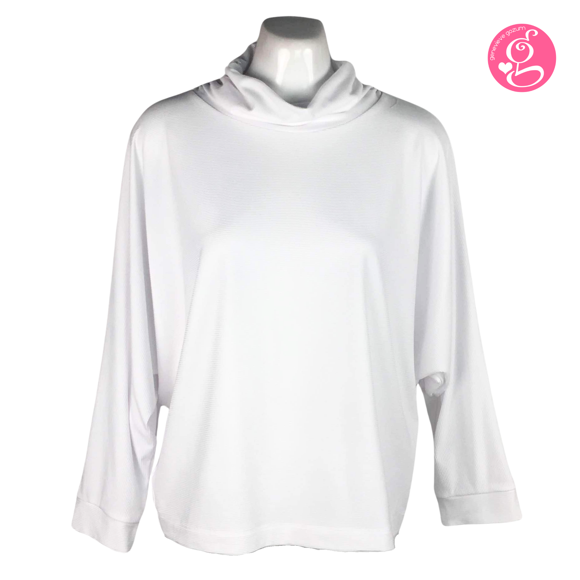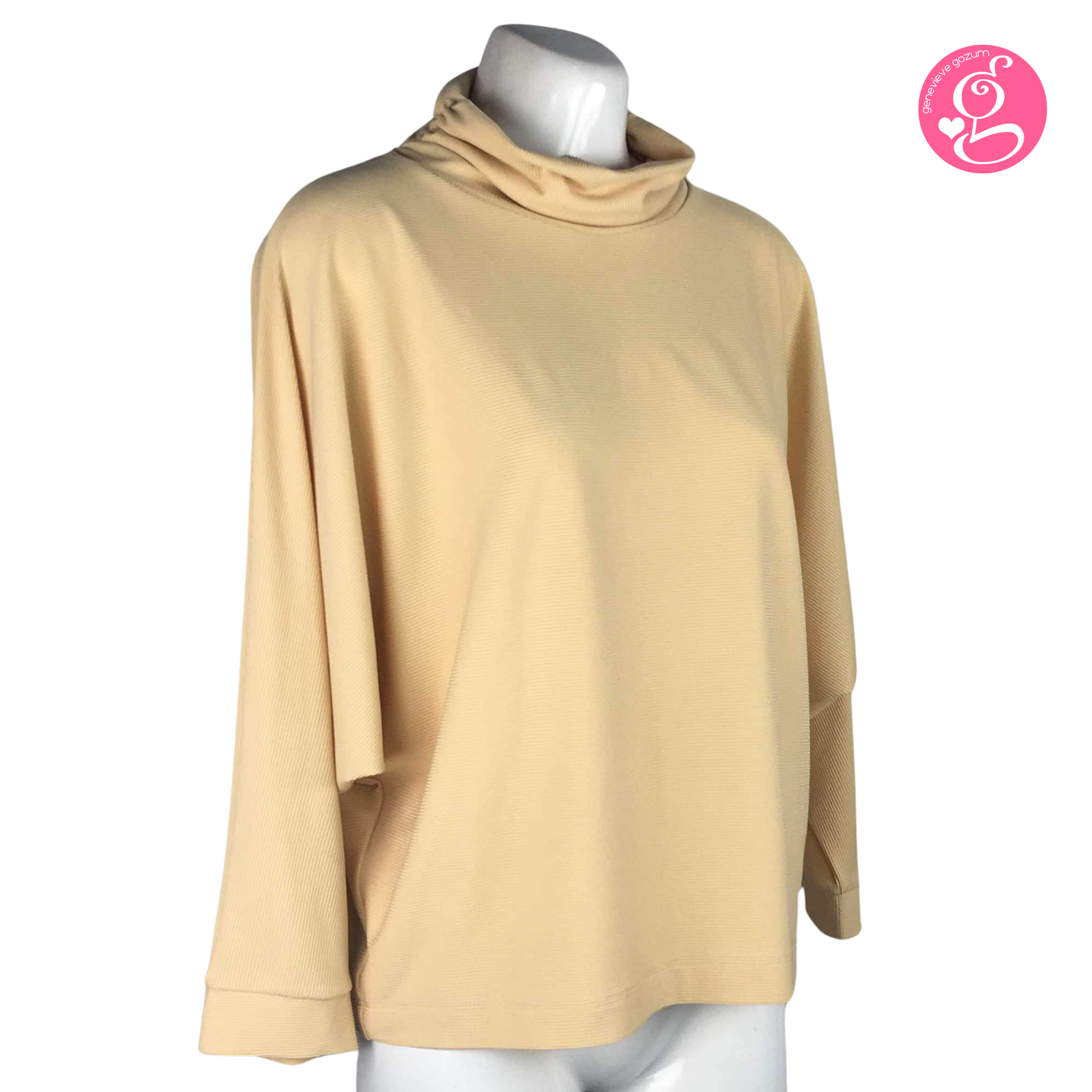 Elevate your wardrobe with the high neck dolman blouse from Genevieve Gozum, the turtleneck version of our best-selling pullover. This stylish blouse features trendy 3/4 length dolman sleeves that add a touch of sophistication to any outfit. Crafted from soft and comfortable cotton spandex, it offers a perfect blend of stretch and ease, making it a versatile piece you'll reach for again and again.