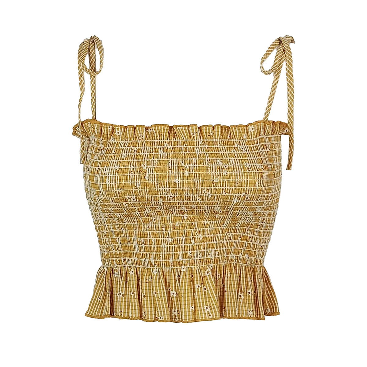 The Sweet Gingham Multiway Tube combines timeless smocking details with modern versatility. Crafted from a breathable cotton blend, this classic spaghetti top features a flattering peplum design that provides gentle coverage while maintaining a polished silhouette. Wear it solo for effortless elegance or layer it beneath sheer pieces for added dimension. Ideal for those seeking both comfort and style without compromise.