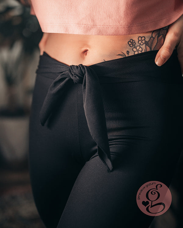 - Our best selling high waist leggings, embraces curves and provides second skin coverage. This leggings has a tie front detail which give you the freedom to adjust the tightness of the waist.