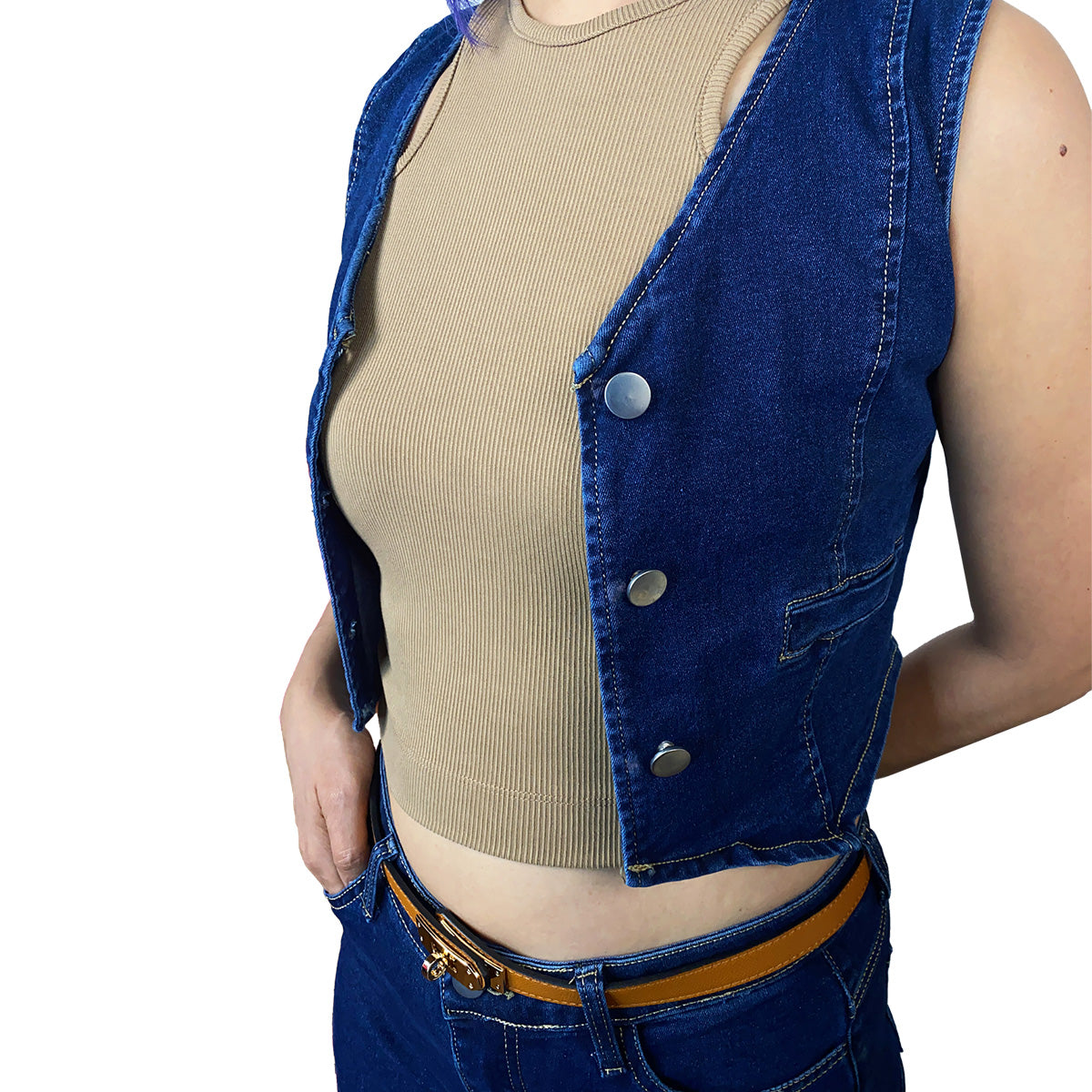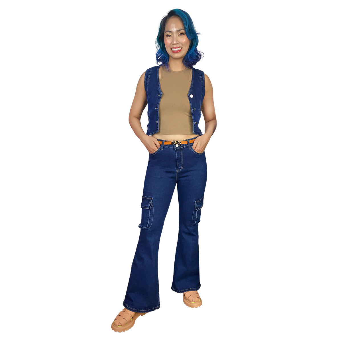 This Ultra Stretch Denim Vest and Flared Cargo Pants set is the perfect blend of comfort, style, and versatility. The denim vest offers a fitted, flattering silhouette with a flexible stretch that moves with you, making it ideal for layering or wearing solo. Paired with the flared cargo pants, which combine a laid-back, oversized fit with functional pockets and a trendy flare at the hem, this set effortlessly captures the essence of casual-chic. Whether dressed up or down, it's a must-have for mixing and matching your wardrobe essentials while staying on top of current trends. Comfortable, fashionable, and endlessly adaptable, this set is your go-to for a day-to-night look.