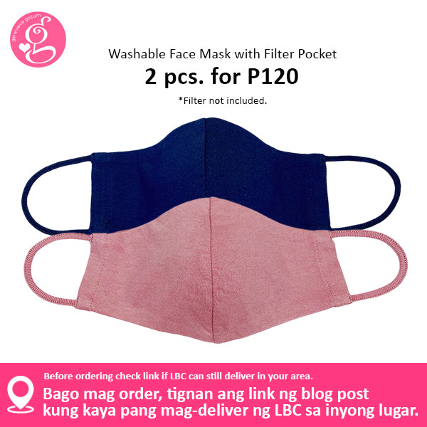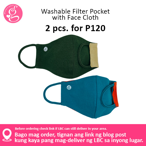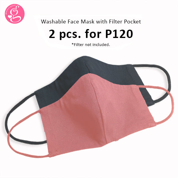 Cotton Solid Color Washable Filter Pocket Face Cloth - Unisex, Comfortable & Reusable - 2 for P140