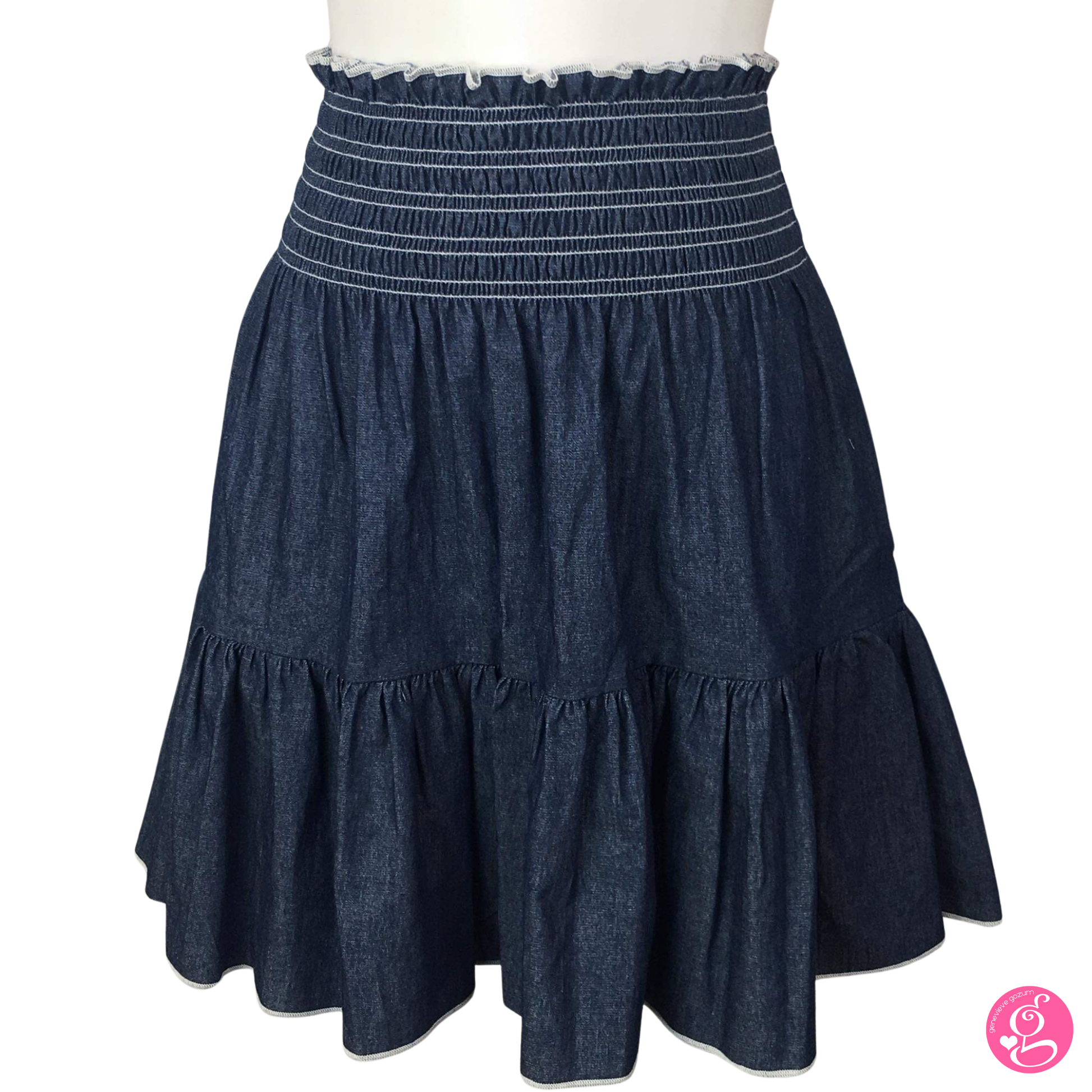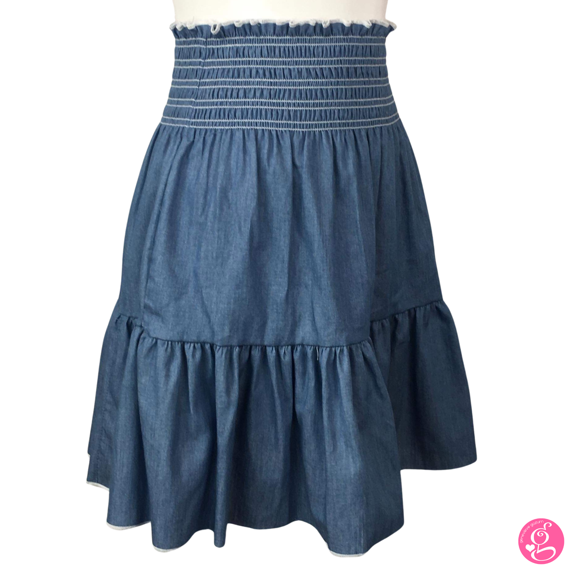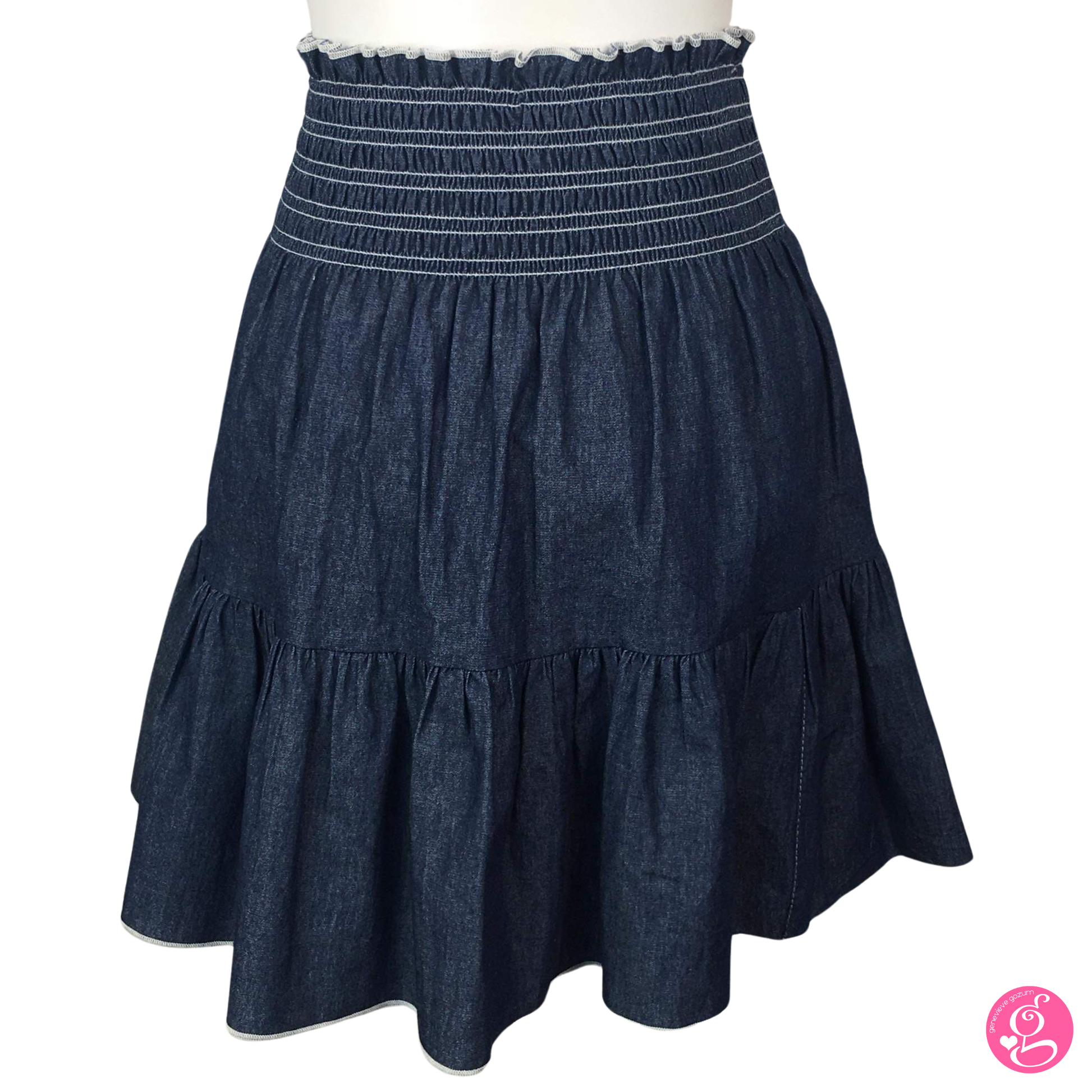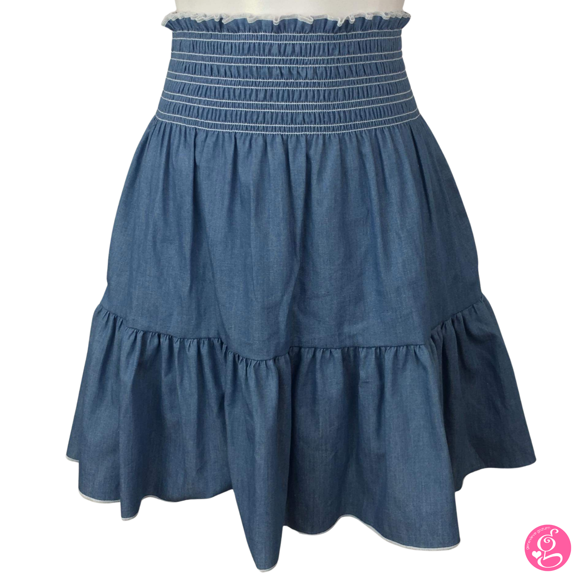 A favorite among fashionistas, the Genevieve Gozum Washed Light Denim Short Layer Skirt is an easy fashion staple that integrates well your wardrobe.