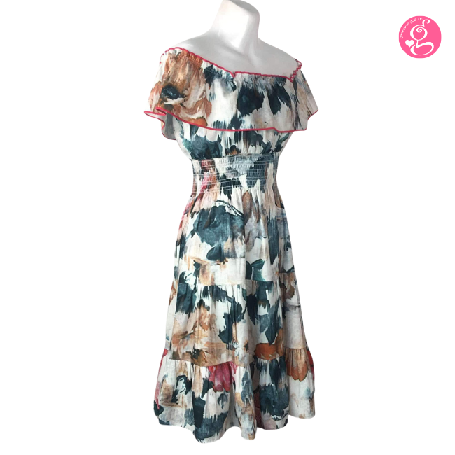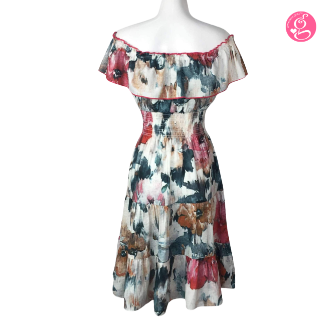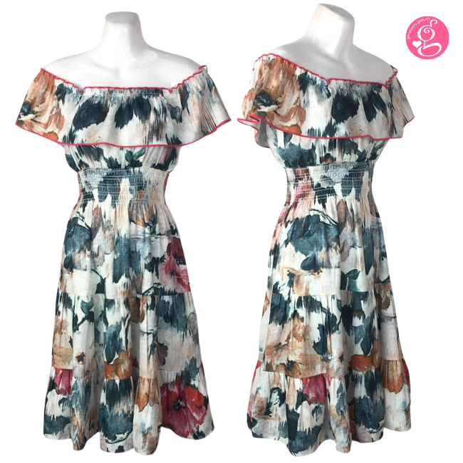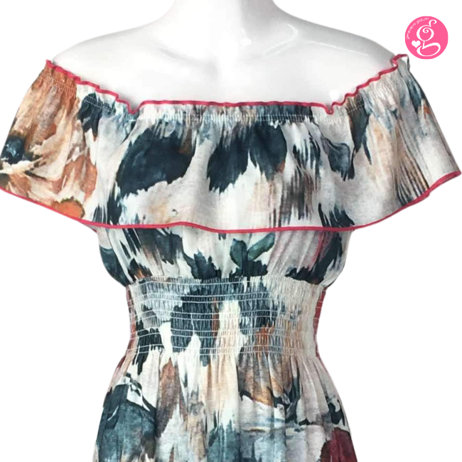 It features elegant off shoulder, with ruffle detail. Wear it on the shoulders, off the shoulders, one shoulder and as a tube. The dress features a fit and flare fit and is very flattering across different body types.